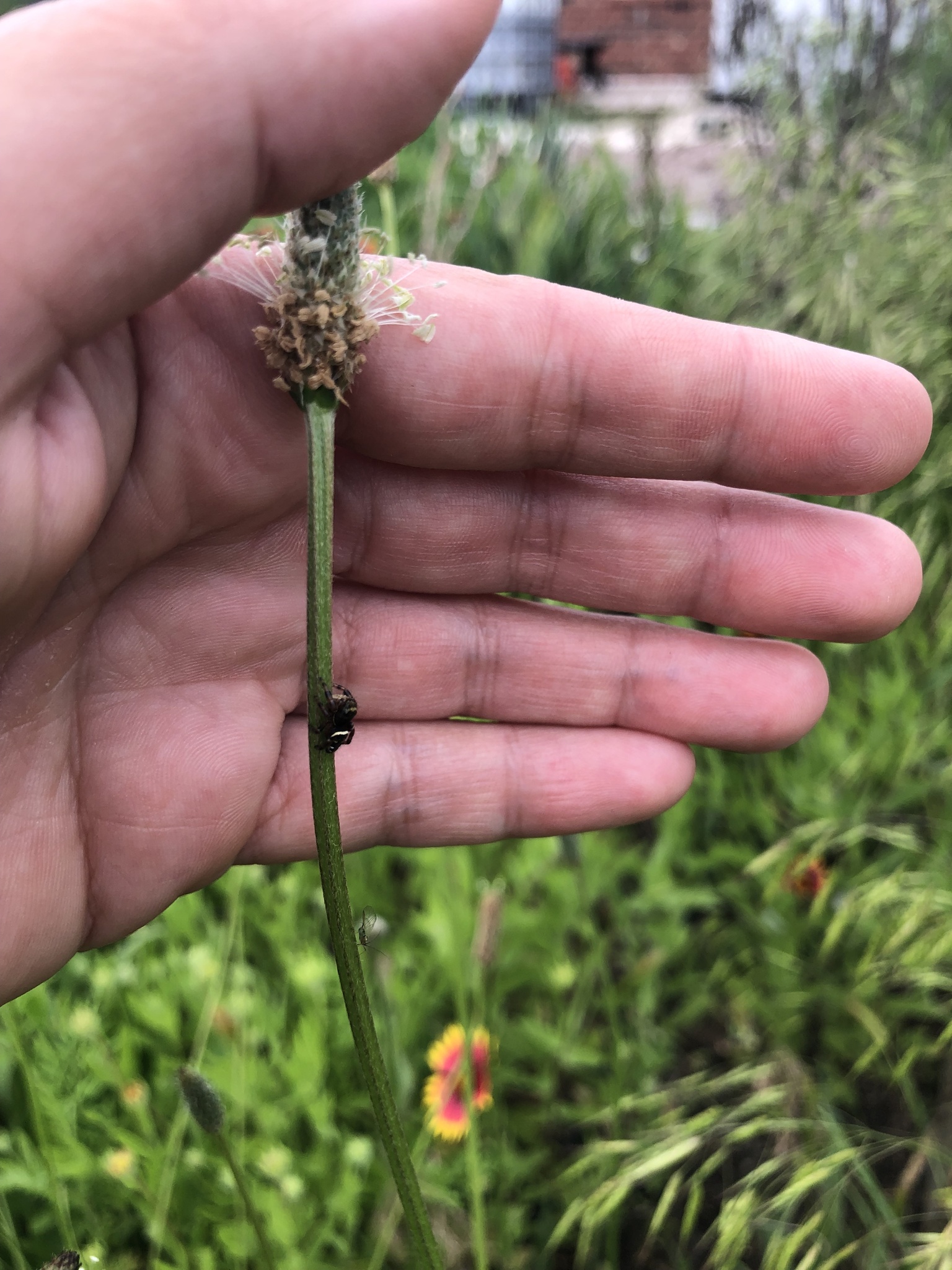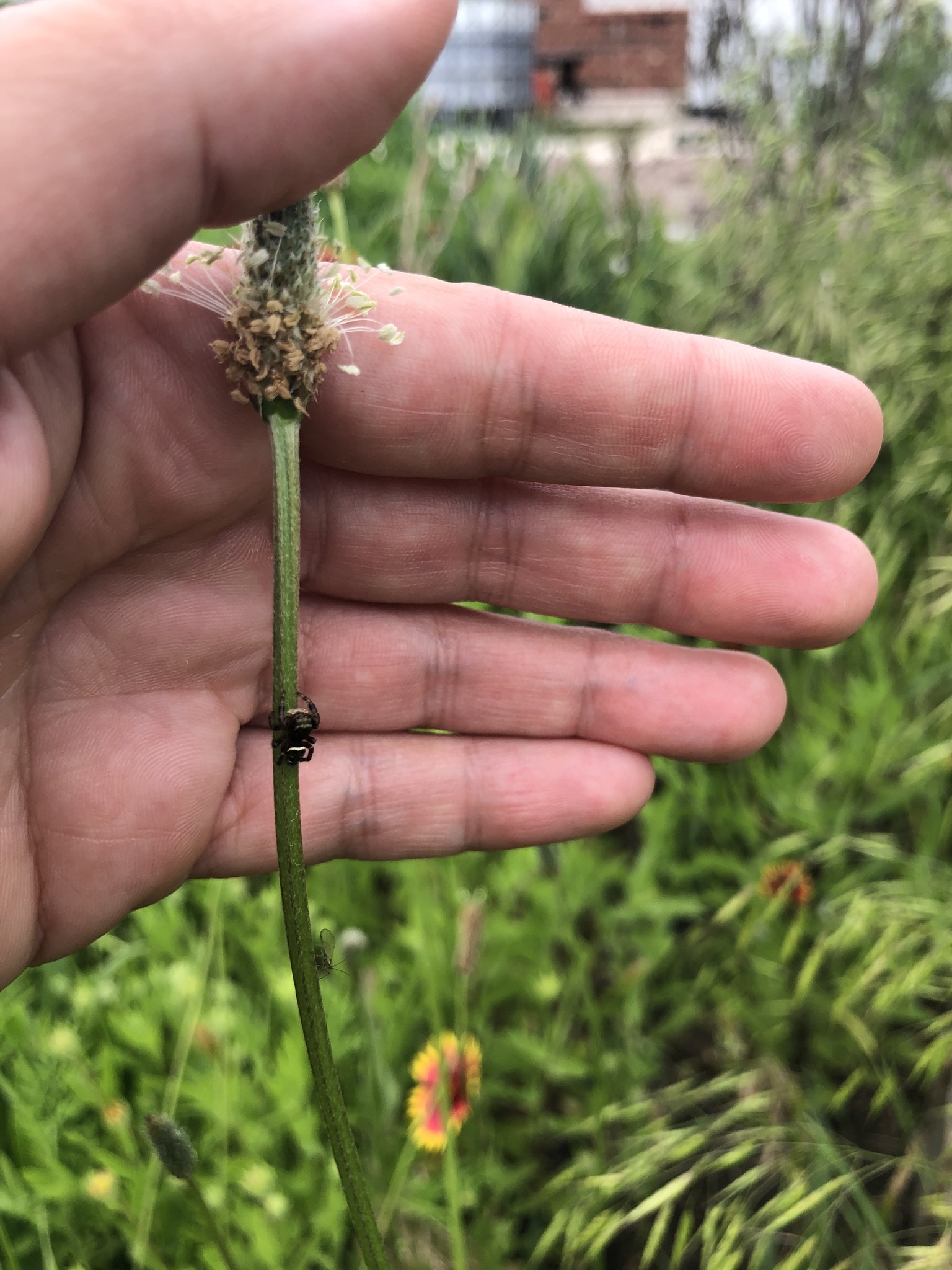 Phidippus clarus | species | Plantago lanceolata | species | interactsWith | Animalia | Arthropoda | Arachnida | Araneae | Salticidae | Phidippus | Plantae | Tracheophyta | Magnoliopsida | Lamiales | Plantaginaceae | Plantago | 35.543117 | -97.491813 | 2023 | 5 | 24 | http://creativecommons.org/licenses/by-nc/4.0/ | https://www.inaturalist.org/observations/163579184 | |