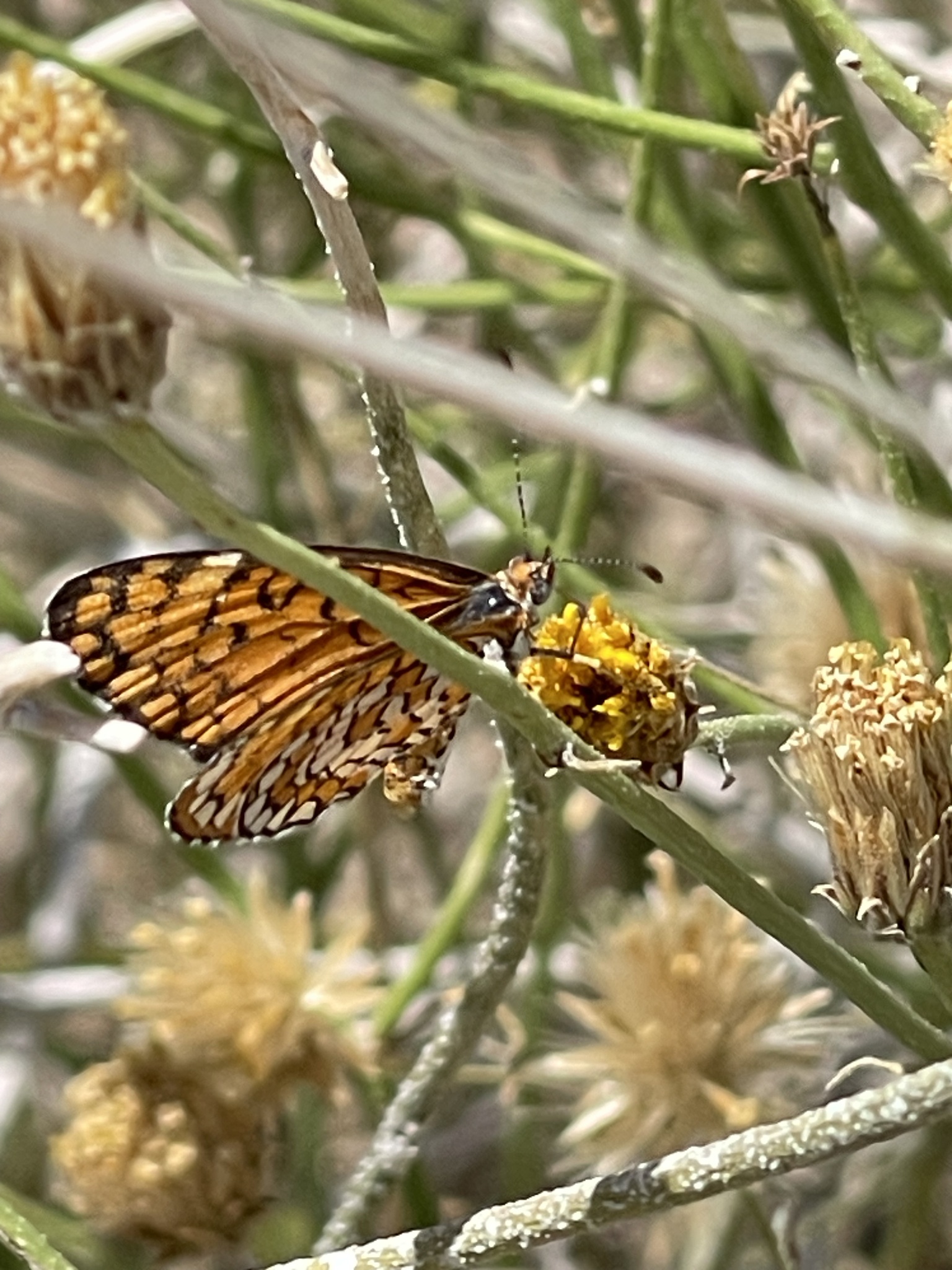 Chlosyne californica | species | Bebbia juncea | species | visitsFlowersOf | Animalia | Arthropoda | Insecta | Lepidoptera | Nymphalidae | Chlosyne | Plantae | Tracheophyta | Magnoliopsida | Asterales | Asteraceae | Bebbia | 33.130014 | -116.430938 | 2023 | 5 | 24 | http://creativecommons.org/licenses/by-nc/4.0/ | https://www.inaturalist.org/observations/163587517 | |