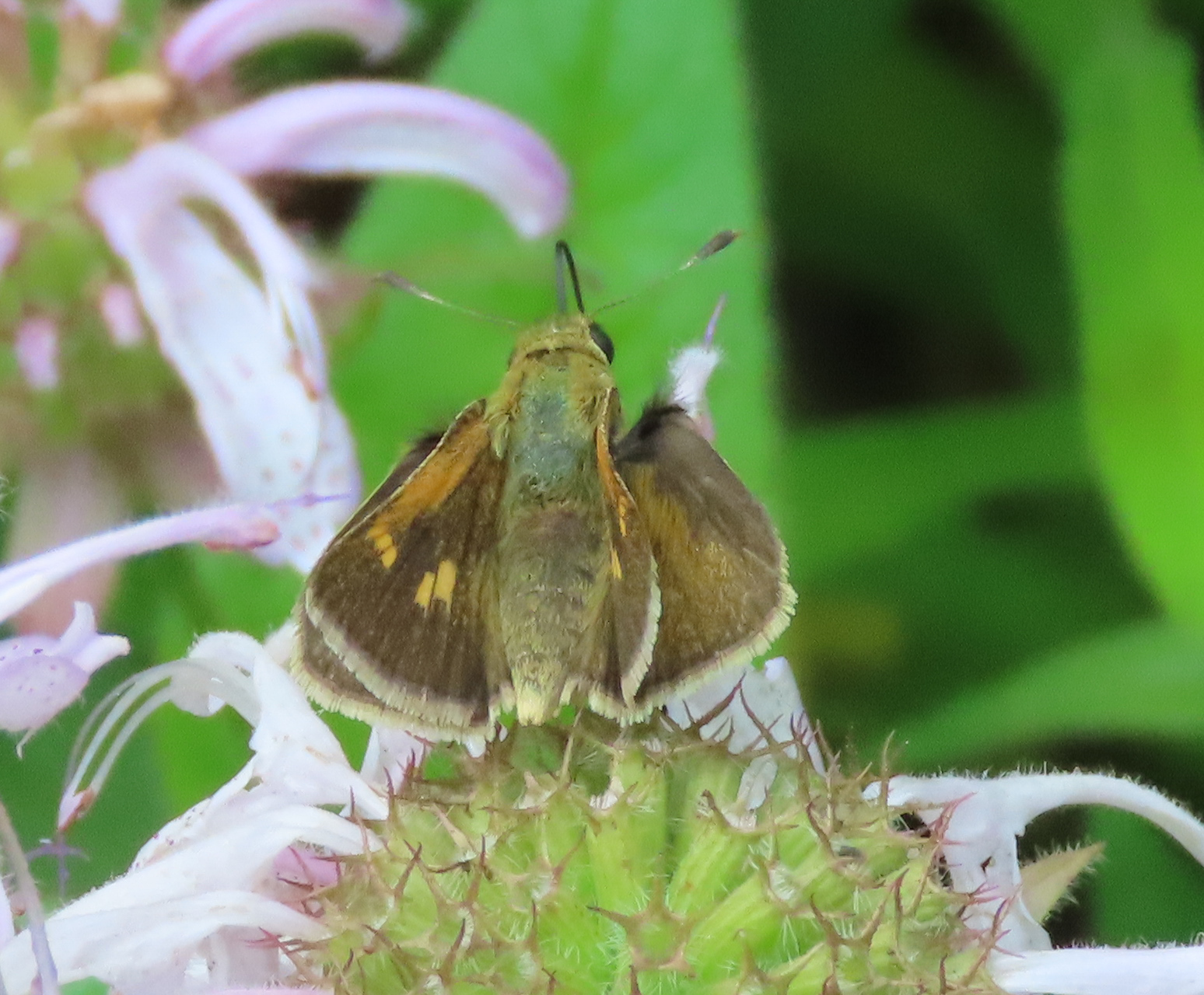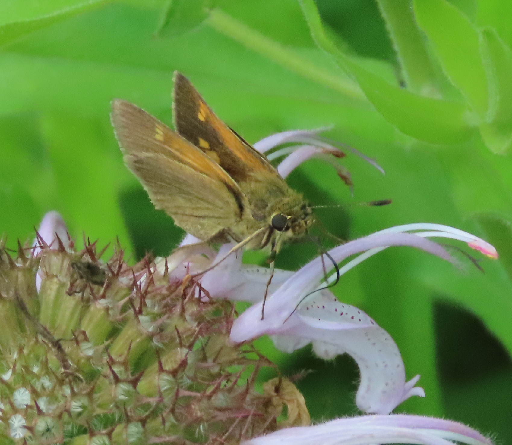 Polites themistocles | species | Monarda bradburiana | species | visitsFlowersOf | Animalia | Arthropoda | Insecta | Lepidoptera | Hesperiidae | Polites | Plantae | Tracheophyta | Magnoliopsida | Lamiales | Lamiaceae | Monarda | 38.946228 | -92.446573 | 2023 | 5 | 24 | http://creativecommons.org/licenses/by-nc-sa/4.0/ | https://www.inaturalist.org/observations/163556240 | |