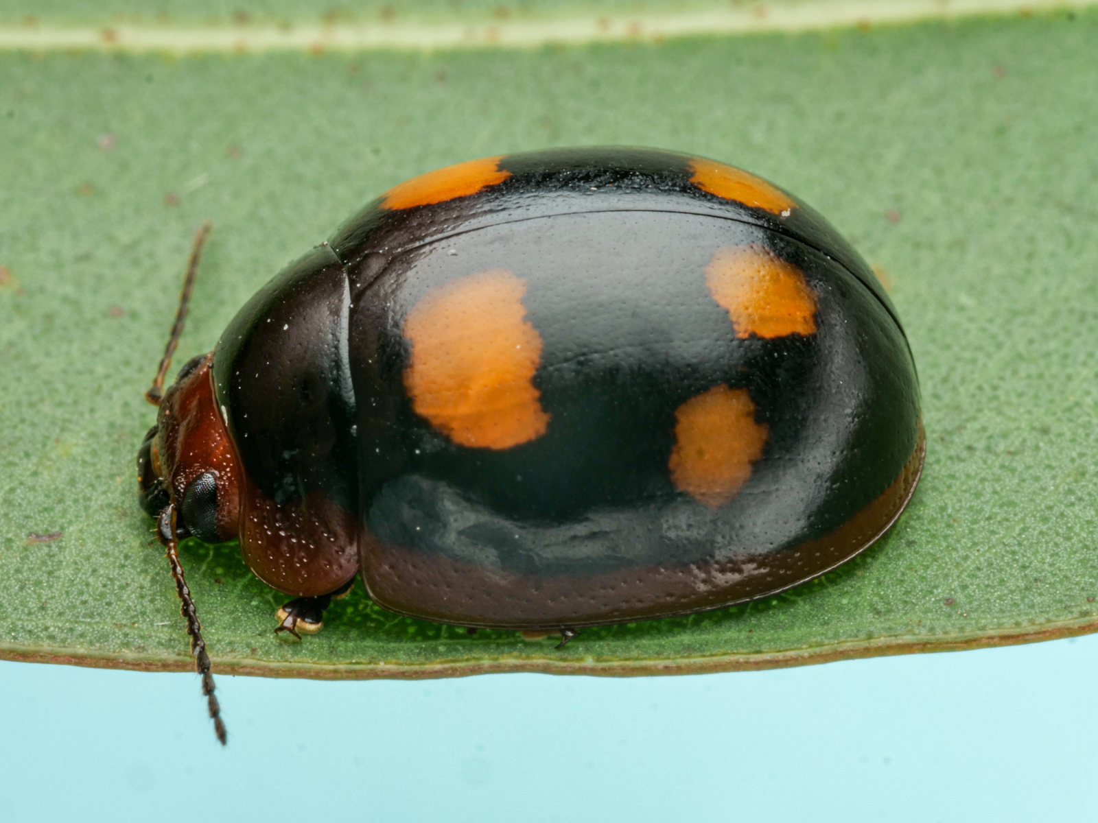 Paropsisterna beata | species | Eucalyptus | genus | visits | Animalia | Arthropoda | Insecta | Coleoptera | Chrysomelidae | Paropsisterna | Plantae | Tracheophyta | Magnoliopsida | Myrtales | Myrtaceae | Eucalyptus | -23.102255 | 150.643106 | 2023 | 5 | 6 | http://creativecommons.org/licenses/by-nc/4.0/ | https://www.inaturalist.org/observations/163558523 | |