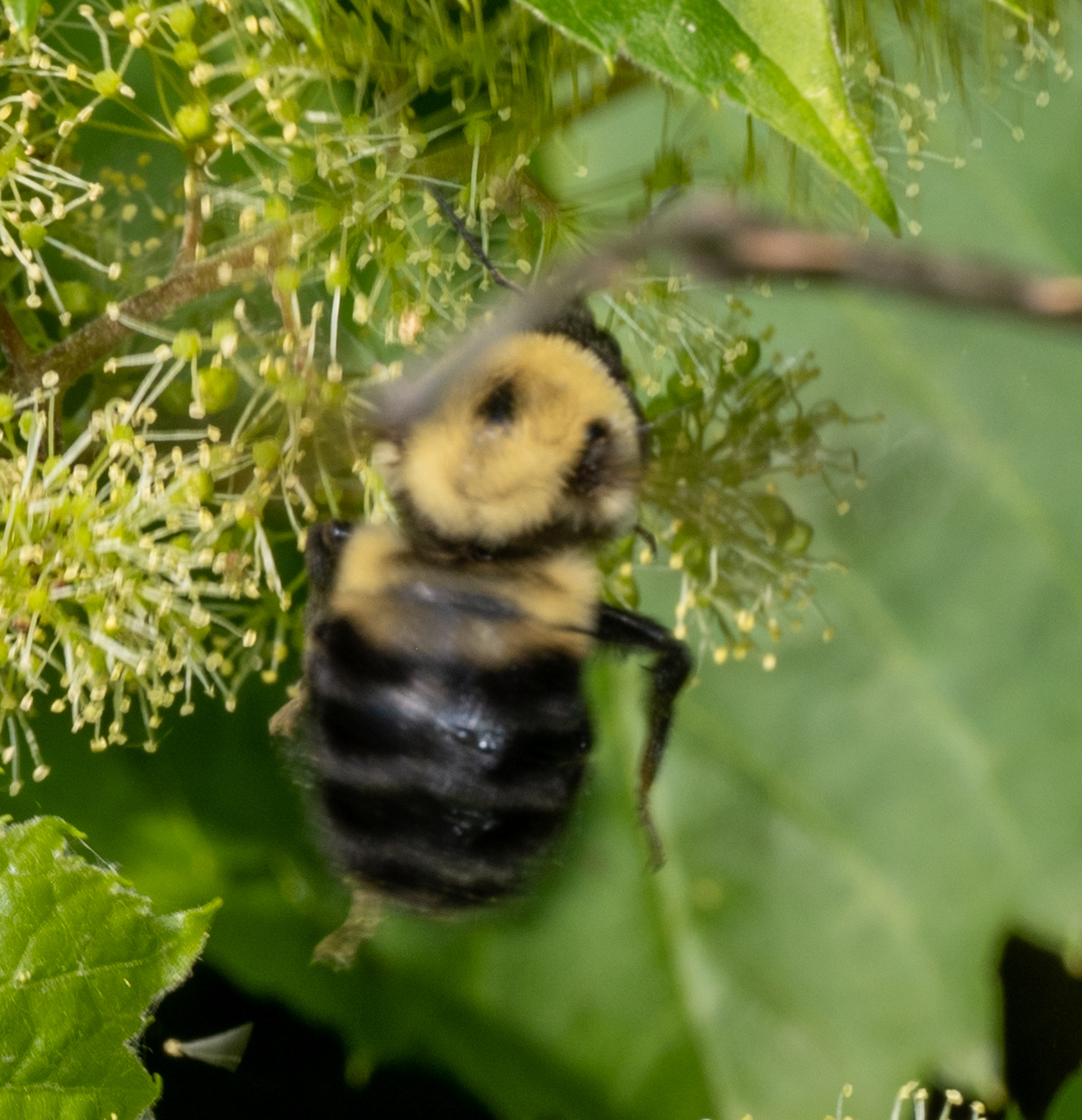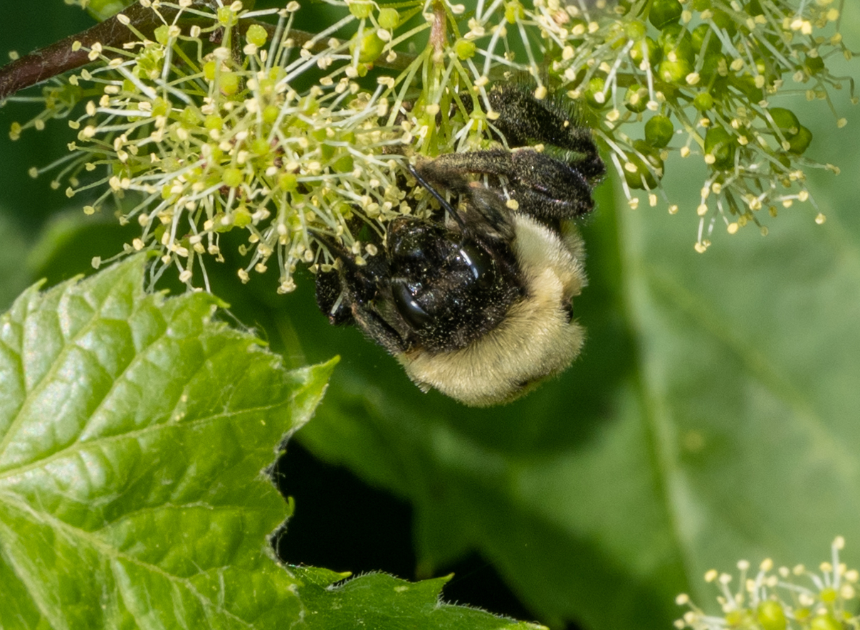Bombus griseocollis | species | Vitis riparia | species | eats | Animalia | Arthropoda | Insecta | Hymenoptera | Apidae | Bombus | Plantae | Tracheophyta | Magnoliopsida | Vitales | Vitaceae | Vitis | 40.80602 | -83.151827 | 2023 | 5 | 24 | http://creativecommons.org/licenses/by-nc/4.0/ | https://www.inaturalist.org/observations/163586258 | |