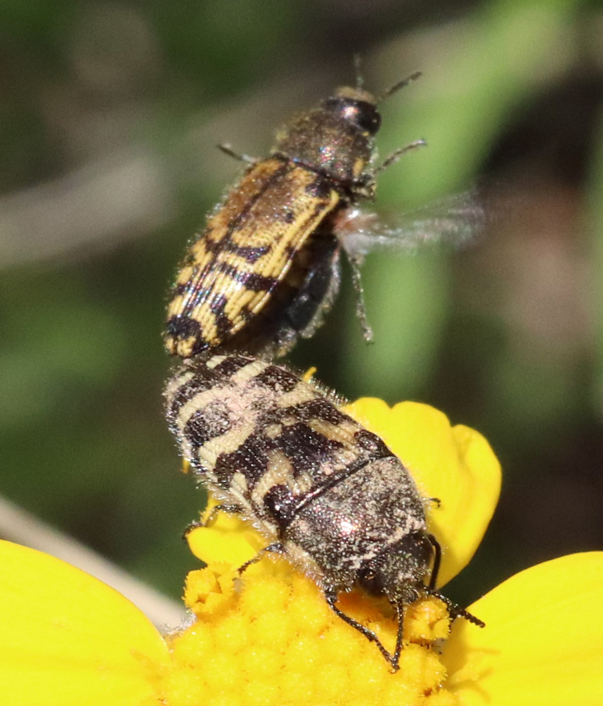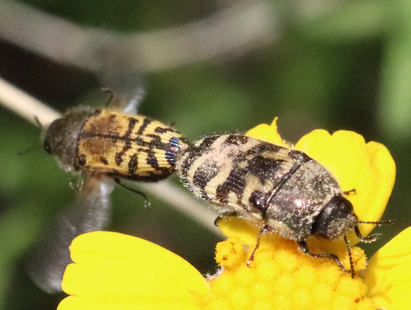 Acmaeodera mixta | species | Tetraneuris scaposa | species | visits | Animalia | Arthropoda | Insecta | Coleoptera | Buprestidae | Acmaeodera | Plantae | Tracheophyta | Magnoliopsida | Asterales | Asteraceae | Tetraneuris | 33.620097 | -101.892645 | 2023 | 5 | 16 | http://creativecommons.org/licenses/by/4.0/ | https://www.inaturalist.org/observations/163435760 | |