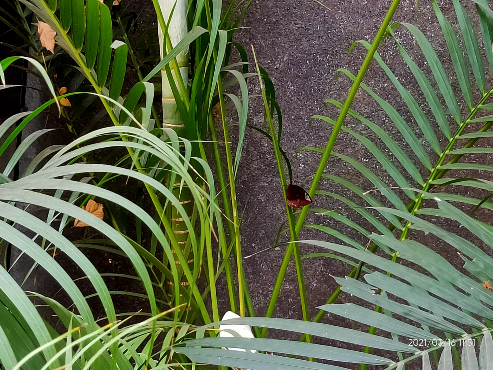 Elymnias hypermnestra | species | Dypsis lutescens | species | interactsWith | Animalia | Arthropoda | Insecta | Lepidoptera | Nymphalidae | Elymnias | Plantae | Tracheophyta | Liliopsida | Arecales | Arecaceae | Dypsis | 19.1727 | 72.959962 | 2021 | 3 | 16 | http://creativecommons.org/licenses/by-nc/4.0/ | https://www.inaturalist.org/observations/71349857 | |