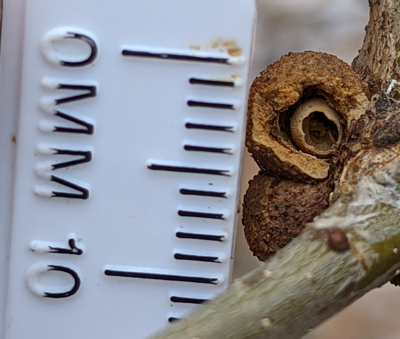 Celticecis oviformis | species | Celtis laevigata | species | interactsWith | Animalia | Arthropoda | Insecta | Diptera | Cecidomyiidae | Celticecis | Plantae | Tracheophyta | Magnoliopsida | Rosales | Cannabaceae | Celtis | 29.609288 | -82.3014 | 2021 | 3 | 16 | http://creativecommons.org/licenses/by-nc-nd/4.0/ | https://www.inaturalist.org/observations/71392912 | |