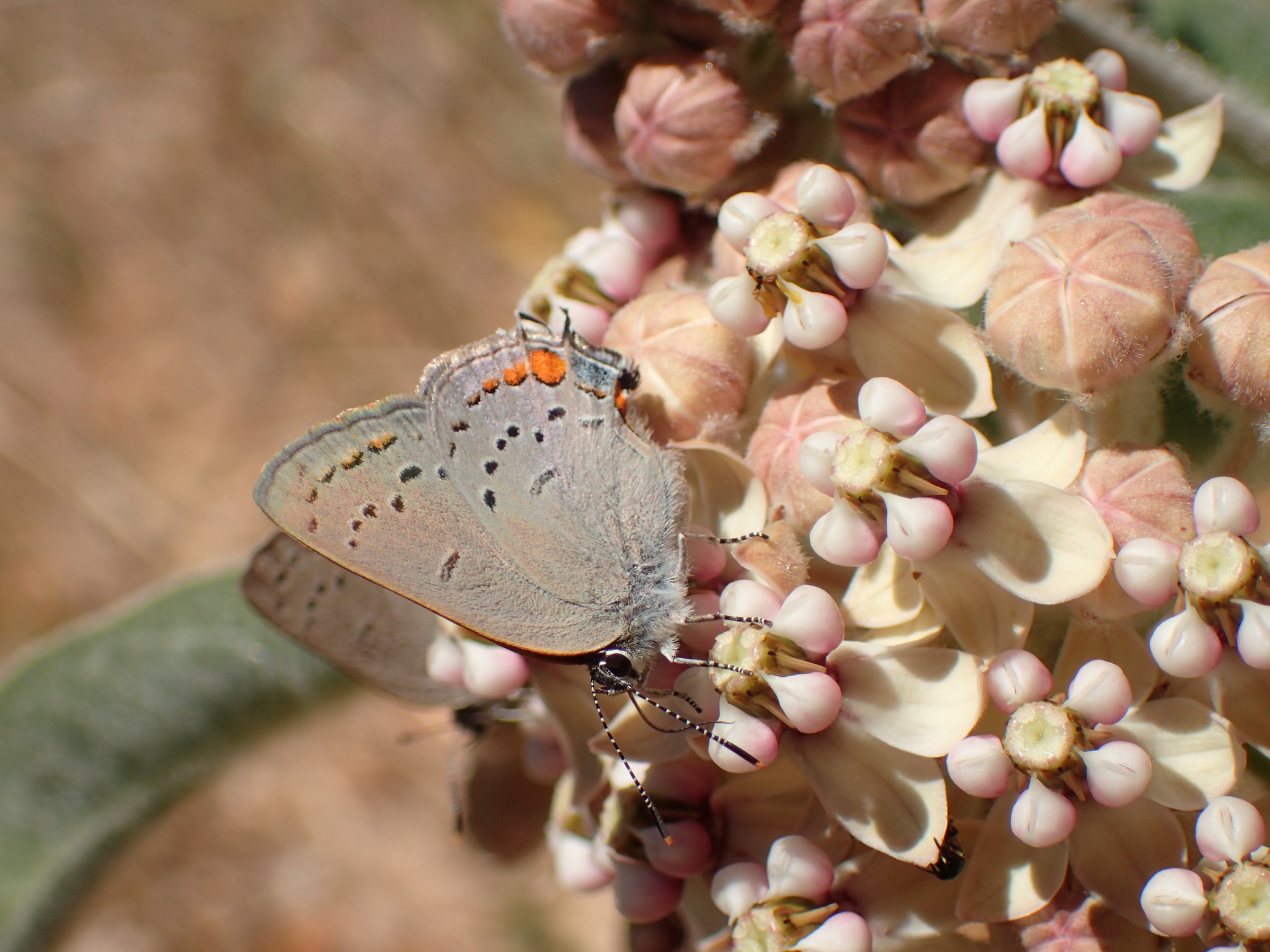 Strymon acadica | species | Asclepias eriocarpa | species | visitsFlowersOf | Animalia | Arthropoda | Insecta | Lepidoptera | Lycaenidae | Strymon | Plantae | Tracheophyta | Magnoliopsida | Gentianales | Apocynaceae | Asclepias | 34.53 | -119.62762 | 2021 | 5 | 30 | http://creativecommons.org/licenses/by/4.0/ | https://www.inaturalist.org/observations/80994100 | |