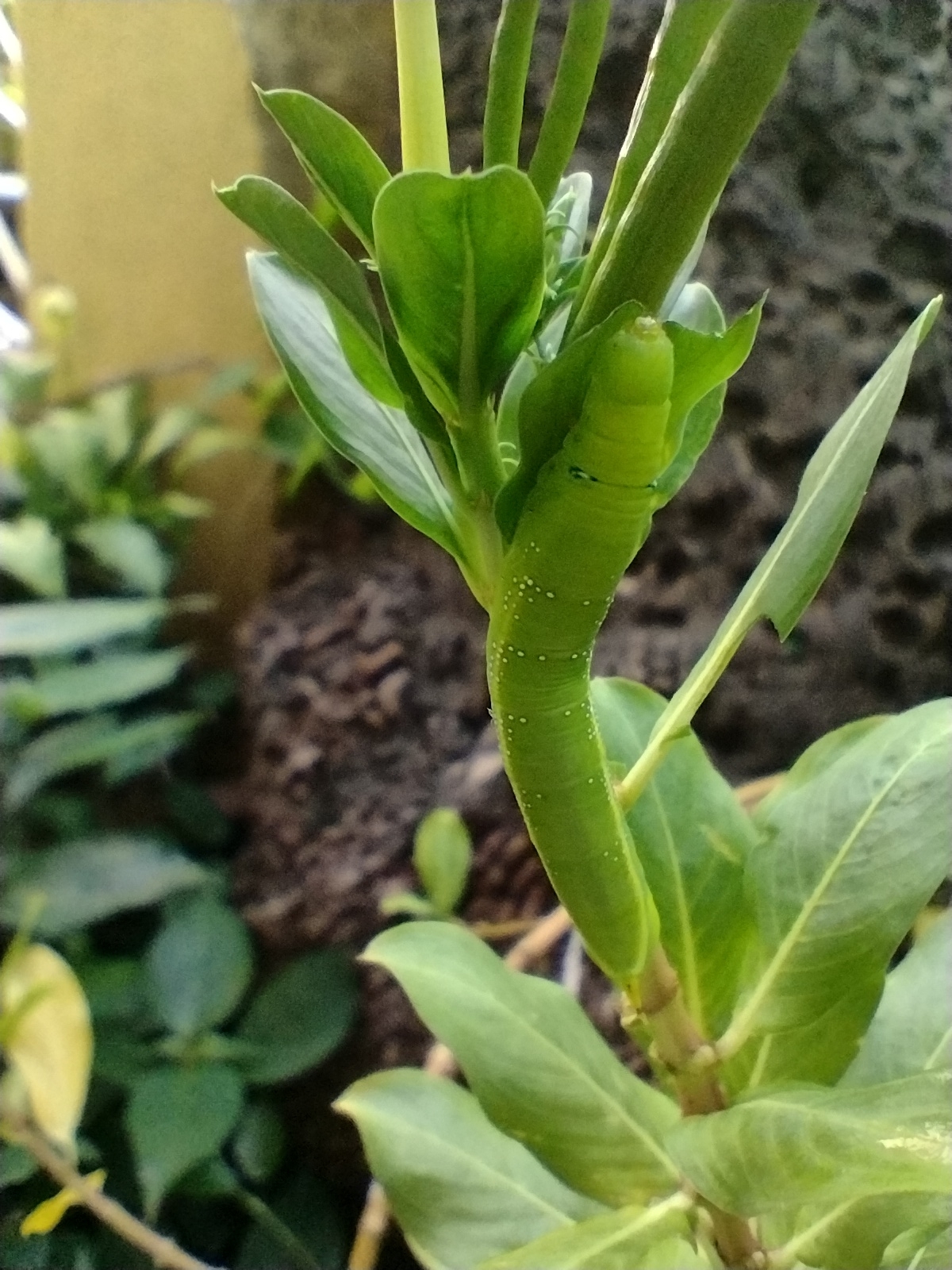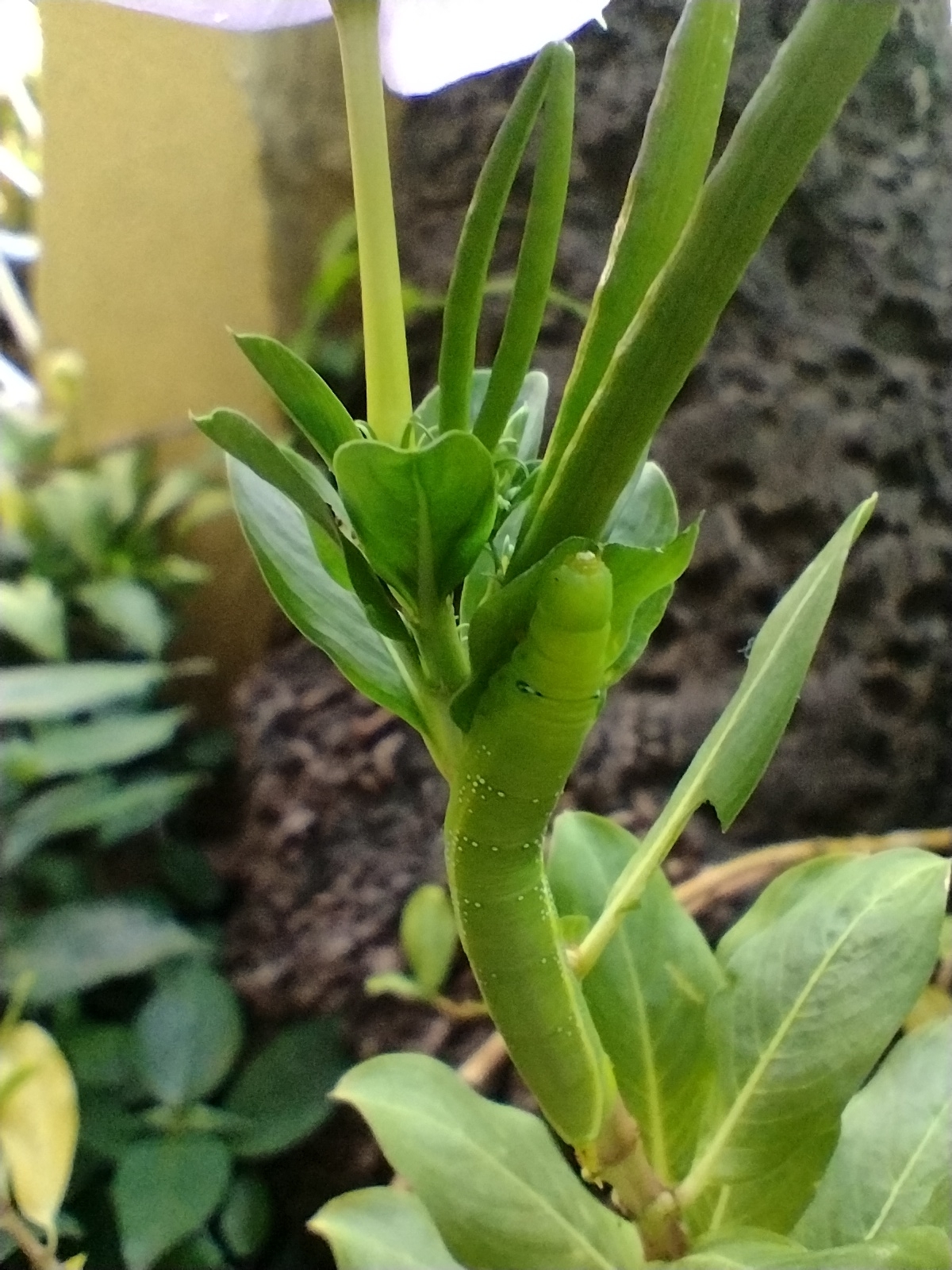Daphnis nerii | species | Catharanthus | genus | interactsWith | Animalia | Arthropoda | Insecta | Lepidoptera | Sphingidae | Daphnis | Plantae | Tracheophyta | Magnoliopsida | Gentianales | Apocynaceae | Catharanthus | 12.924716 | 77.587855 | 2021 | 5 | 31 | http://creativecommons.org/licenses/by-nc/4.0/ | https://www.inaturalist.org/observations/81015816 | |
