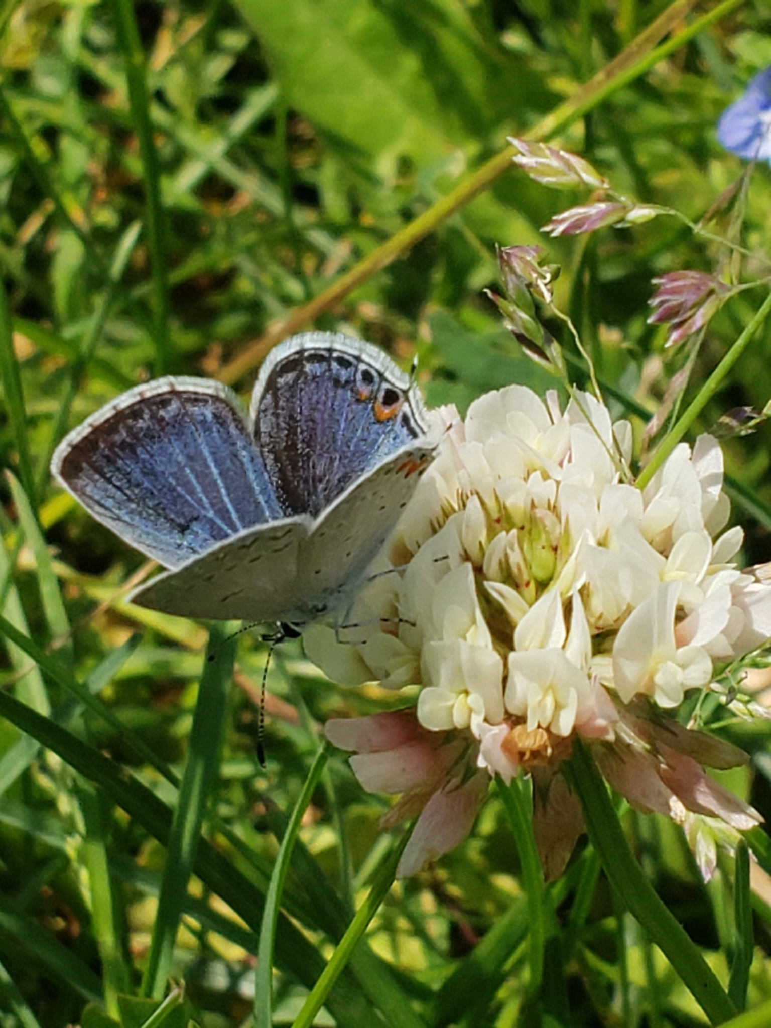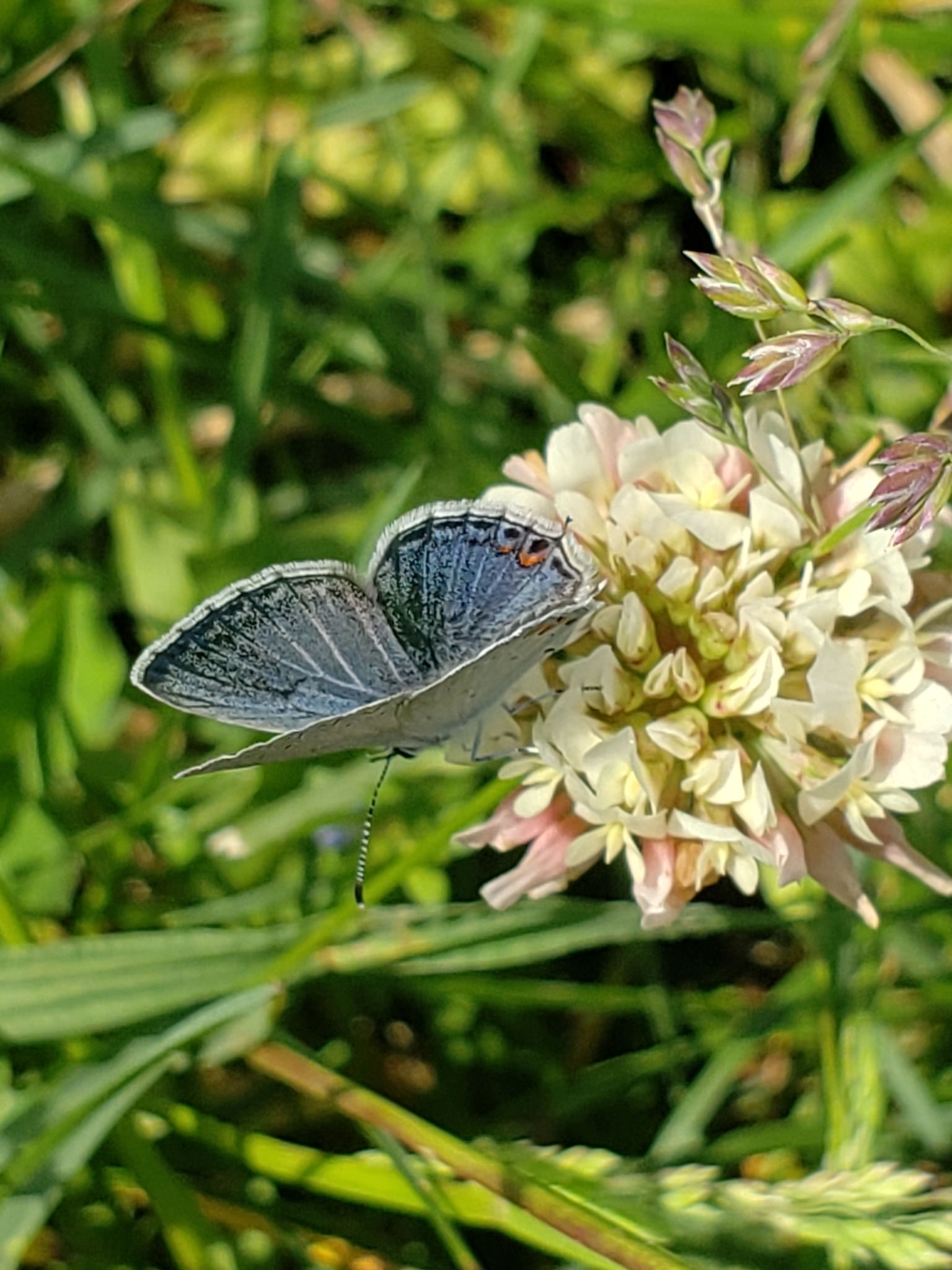 Elkalyce comyntas | species | Trifolium repens | species | visitsFlowersOf | Animalia | Arthropoda | Insecta | Lepidoptera | Lycaenidae | Elkalyce | Plantae | Tracheophyta | Magnoliopsida | Fabales | Fabaceae | Trifolium | 40.800102 | -77.895819 | 2021 | 5 | 31 | http://creativecommons.org/licenses/by-nc/4.0/ | https://www.inaturalist.org/observations/81042528 | |