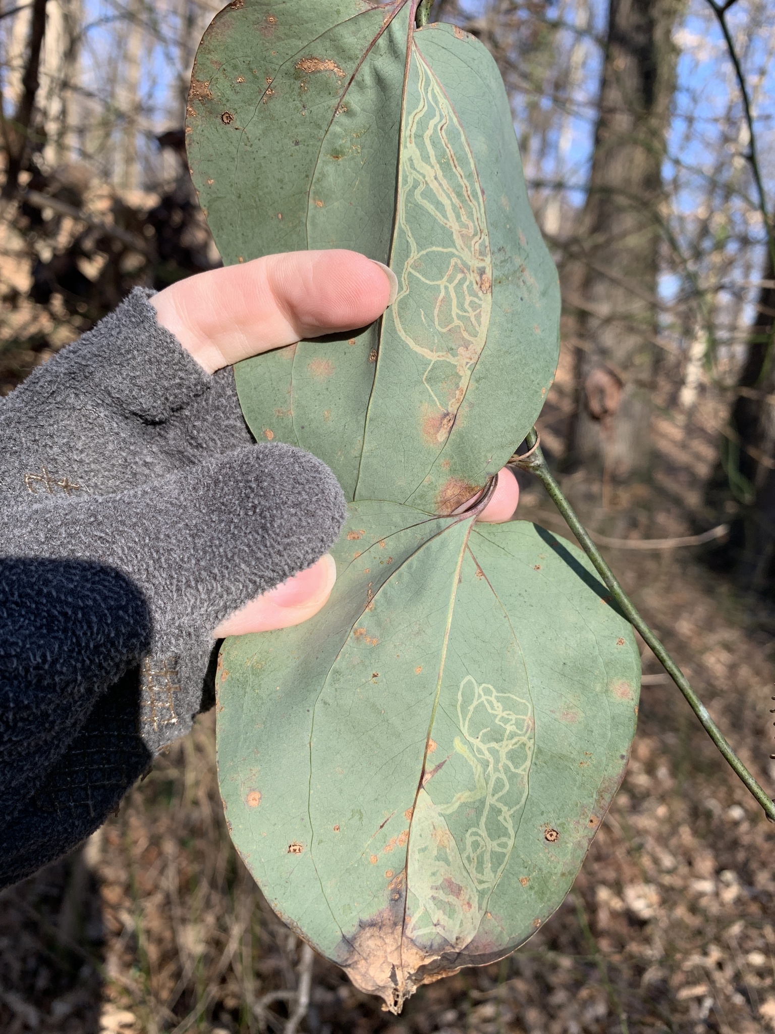Marmara smilacisella | species | Smilax glauca | species | interactsWith | Animalia | Arthropoda | Insecta | Lepidoptera | Gracillariidae | Marmara | Plantae | Tracheophyta | Liliopsida | Liliales | Smilacaceae | Smilax | 38.866728 | -76.968388 | 2021 | 3 | 14 | http://creativecommons.org/licenses/by/4.0/ | https://www.inaturalist.org/observations/71227723 | |