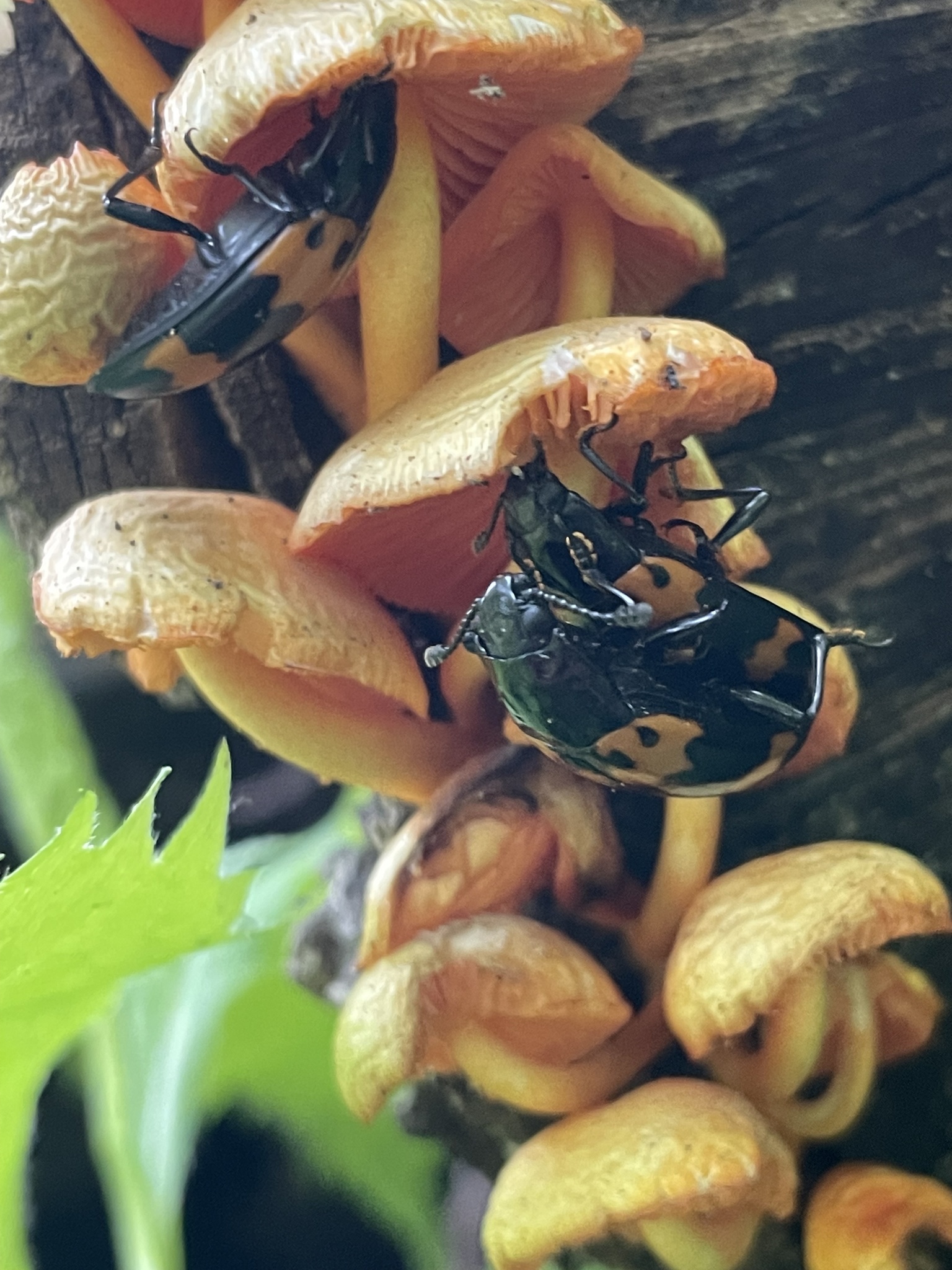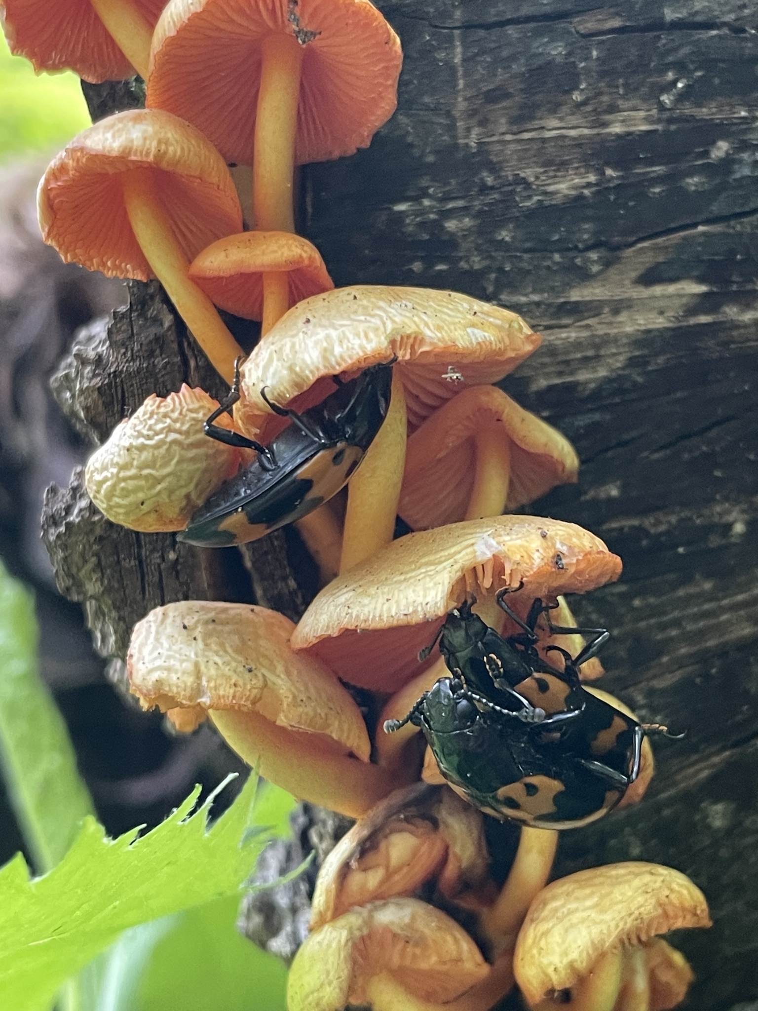Megalodacne heros | species | Mycena leaiana | species | eats | Animalia | Arthropoda | Insecta | Coleoptera | Erotylidae | Megalodacne | Fungi | Basidiomycota | Agaricomycetes | Agaricales | Mycenaceae | Mycena | 39.425838 | -79.1175 | 2023 | 5 | 22 | http://creativecommons.org/publicdomain/zero/1.0/ | https://www.inaturalist.org/observations/163408663 | |