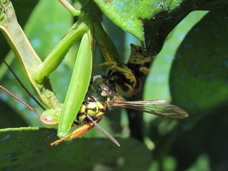 Mantis religiosa | species | Vespula vulgaris | species | preysOn | Animalia | Arthropoda | Insecta | Mantodea | Mantidae | Mantis | Animalia | Arthropoda | Insecta | Hymenoptera | Vespidae | Vespula | 42.100304 | -8.75768 | 2015 | 8 | 29 | http://creativecommons.org/licenses/by-nc/4.0/ | https://www.inaturalist.org/observations/71161813 | |