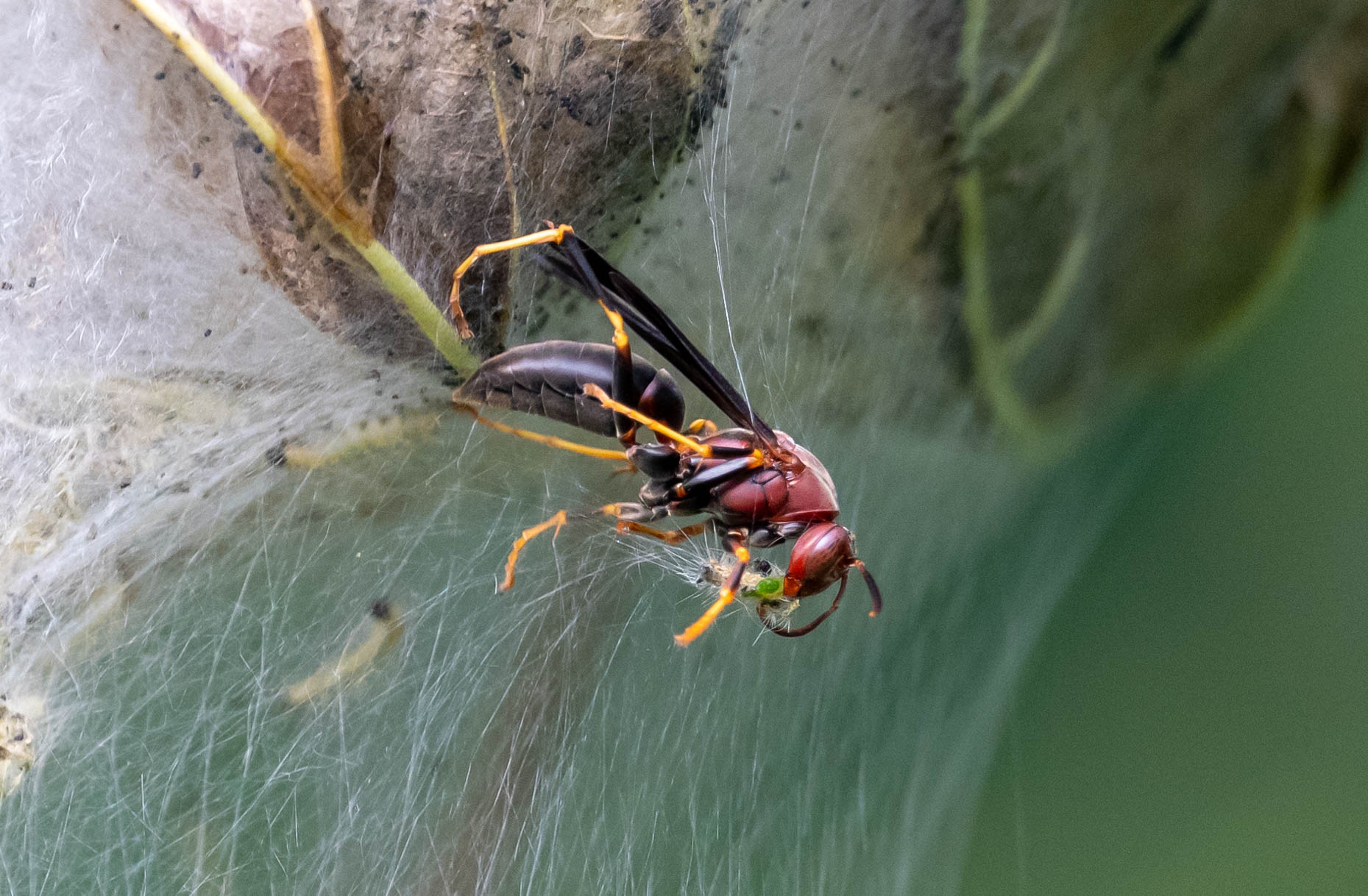 Polistes metricus | species | Malacosoma americana | species | preysOn | Animalia | Arthropoda | Insecta | Hymenoptera | Eumenidae | Polistes | Animalia | Arthropoda | Insecta | Lepidoptera | Lasiocampidae | Malacosoma | 29.528295 | -95.183118 | 2023 | 5 | 22 | http://creativecommons.org/licenses/by-nc/4.0/ | https://www.inaturalist.org/observations/163219823 | |