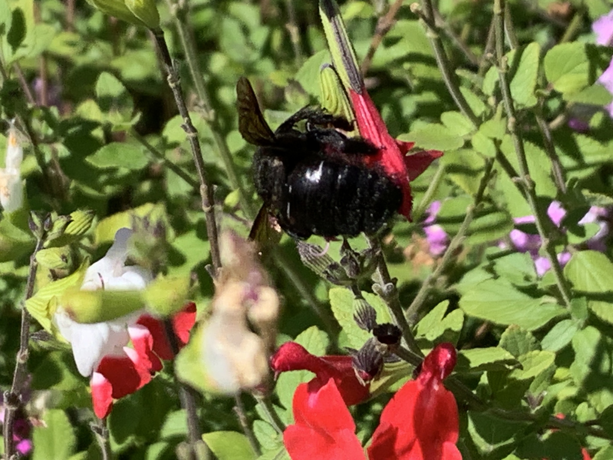 Xylocopa sonorina | species | Salvia microphylla | species | eats | Animalia | Arthropoda | Insecta | Hymenoptera | Apidae | Xylocopa | Plantae | Tracheophyta | Magnoliopsida | Lamiales | Lamiaceae | Salvia | 38.251737 | -121.982558 | 2023 | 5 | 22 | http://creativecommons.org/licenses/by-nc/4.0/ | https://www.inaturalist.org/observations/163222654 | |