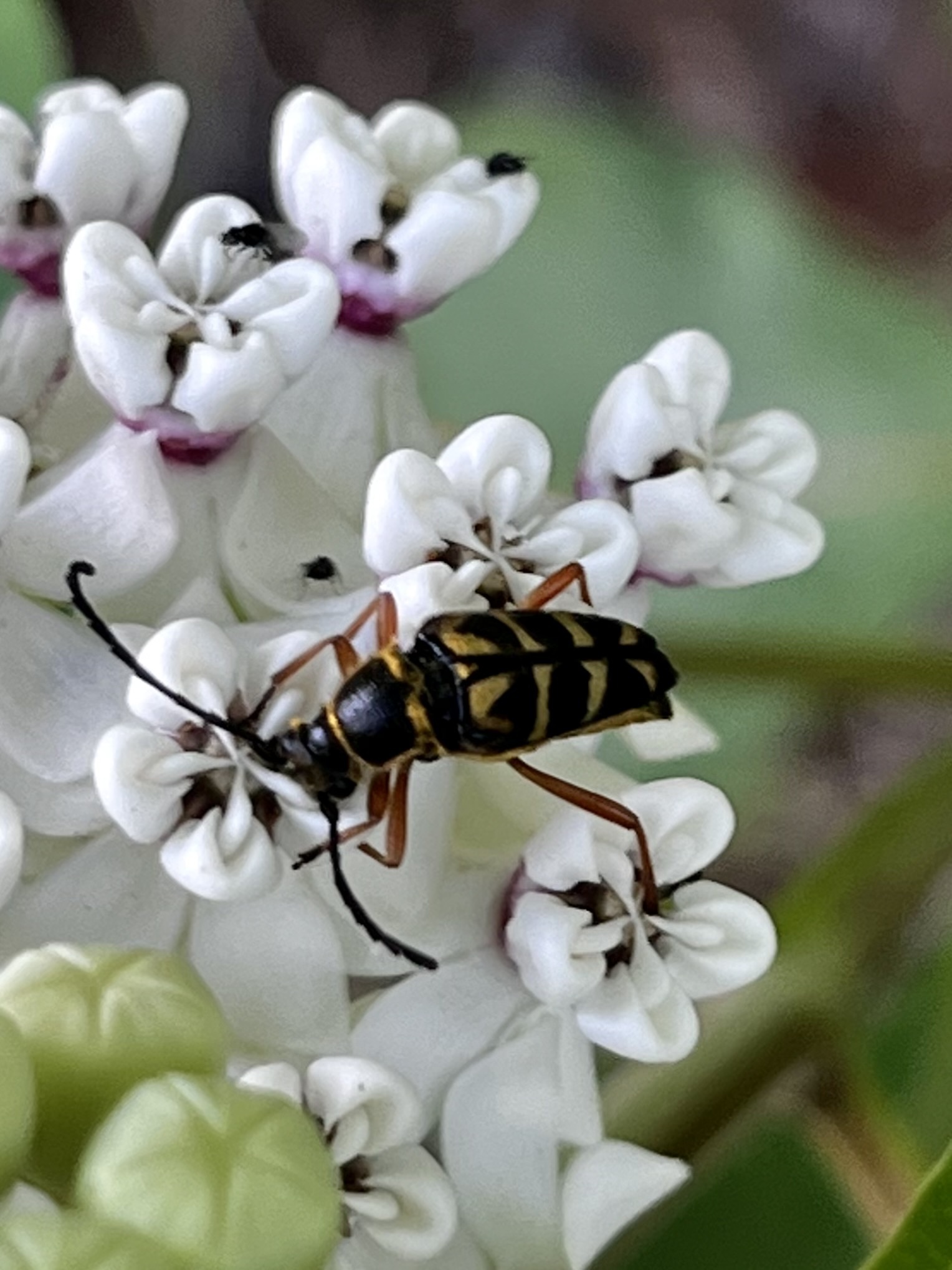 Typocerus zebra | species | Asclepias variegata | species | interactsWith | Animalia | Arthropoda | Insecta | Coleoptera | Cerambycidae | Typocerus | Plantae | Tracheophyta | Magnoliopsida | Gentianales | Apocynaceae | Asclepias | 33.377188 | -89.252762 | 2023 | 5 | 22 | http://creativecommons.org/licenses/by-nc/4.0/ | https://www.inaturalist.org/observations/163216824 | |