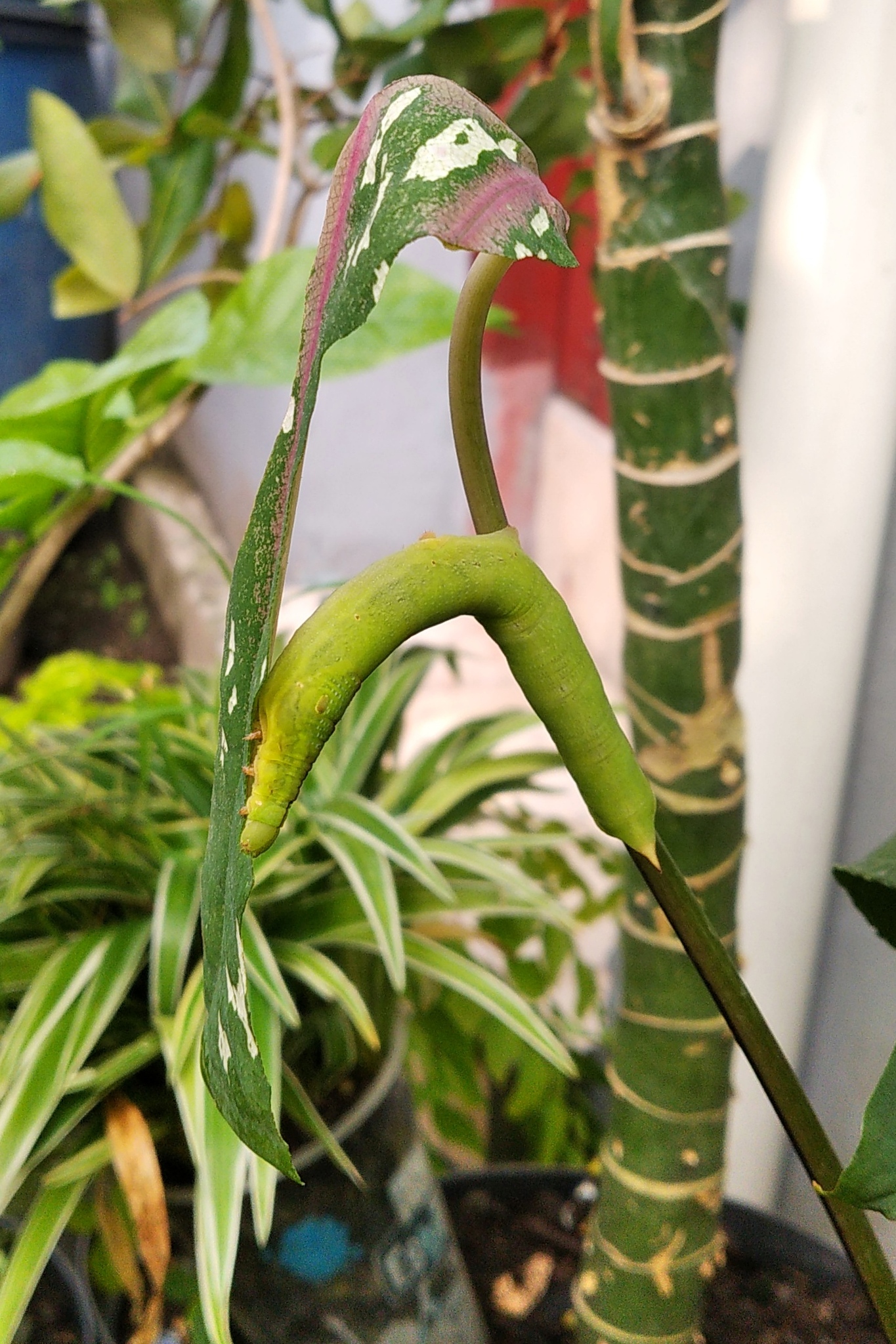 Eupanacra elegantulus | species | Caladium bicolor | species | eats | Animalia | Arthropoda | Insecta | Lepidoptera | Sphingidae | Eupanacra | Plantae | Tracheophyta | Liliopsida | Alismatales | Araceae | Caladium | -7.77246 | 110.539934 | 2023 | 5 | 3 | http://creativecommons.org/licenses/by-nc/4.0/ | https://www.inaturalist.org/observations/163146670 | |