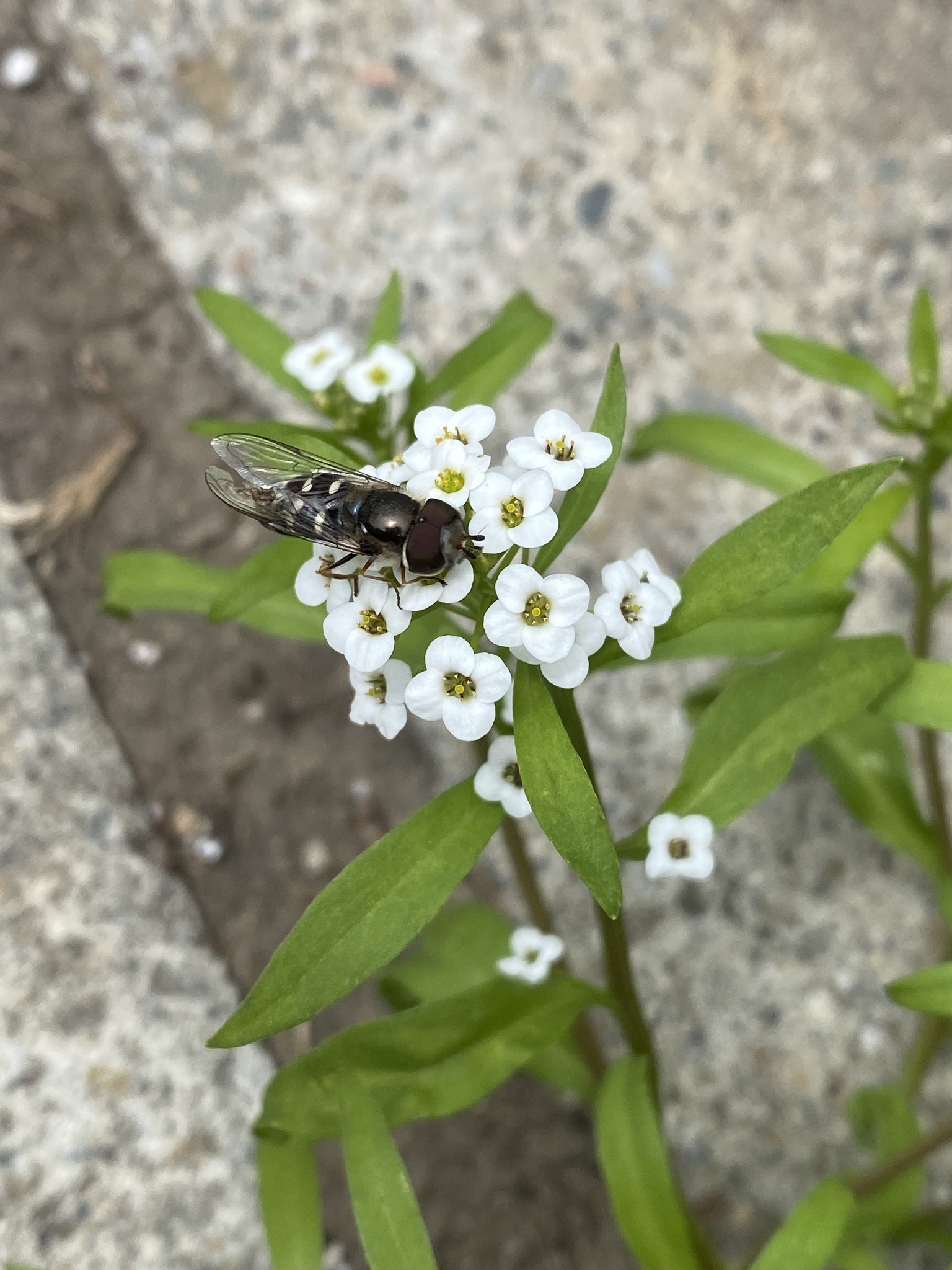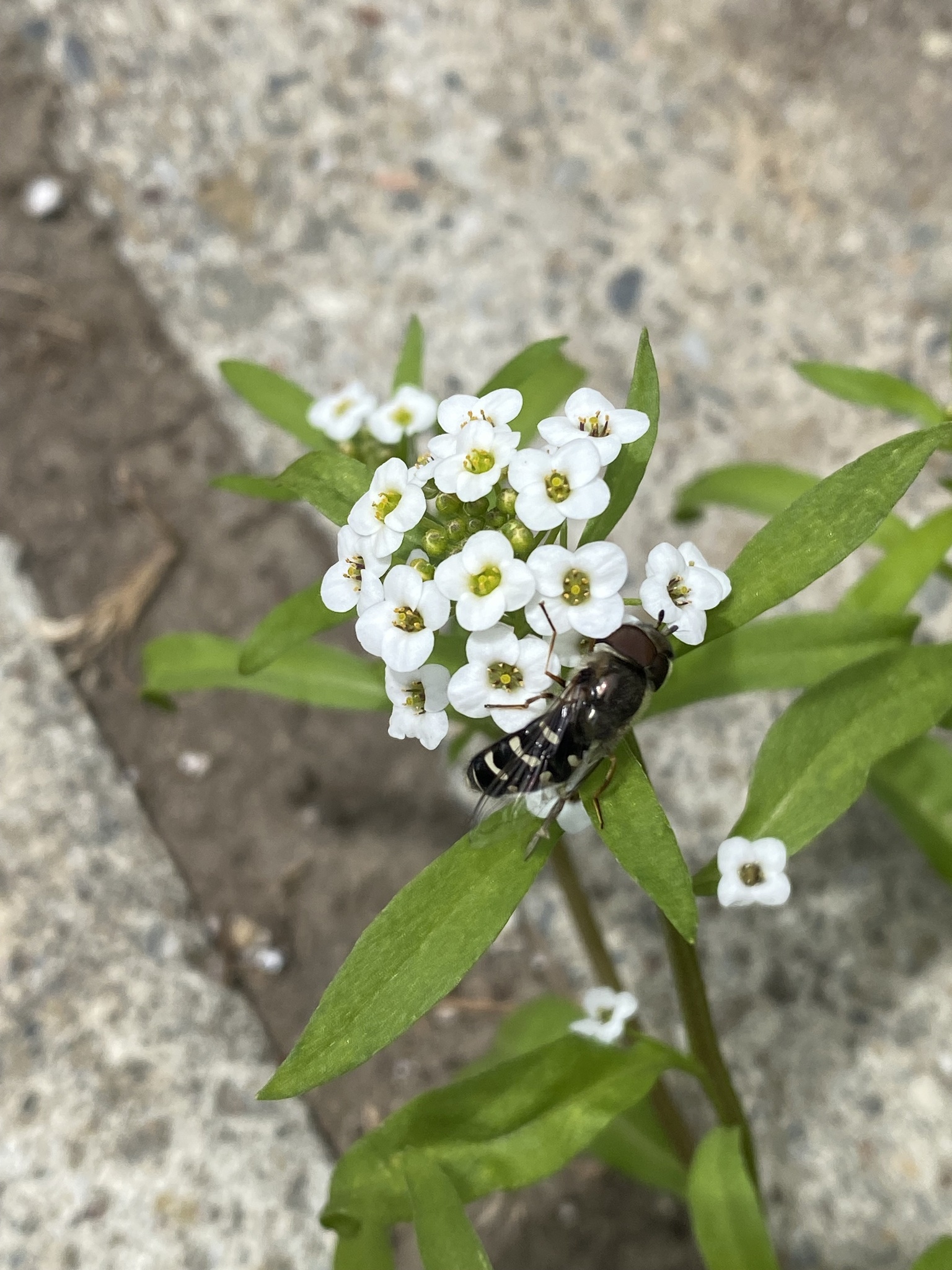 Scaeva affinis | species | Lobularia maritima | species | eats | Animalia | Arthropoda | Insecta | Diptera | Syrphidae | Scaeva | Plantae | Tracheophyta | Magnoliopsida | Brassicales | Brassicaceae | Lobularia | 37.738762 | -122.161728 | 2023 | 5 | 20 | http://creativecommons.org/licenses/by-nc/4.0/ | https://www.inaturalist.org/observations/163156650 | |