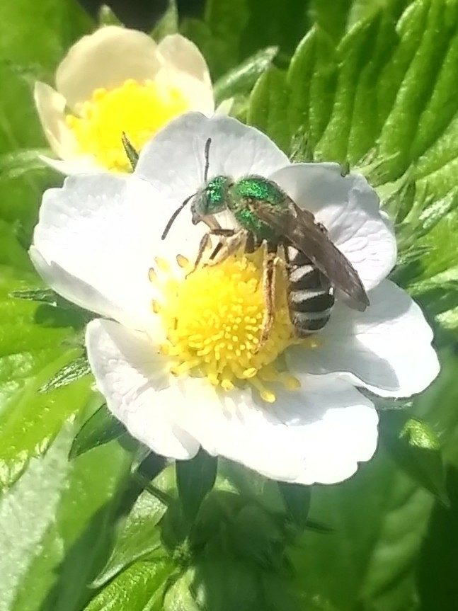 Agapostemon virescens | species | Fragaria | genus | visitsFlowersOf | Animalia | Arthropoda | Insecta | Hymenoptera | Halictidae | Agapostemon | Plantae | Tracheophyta | Magnoliopsida | Rosales | Rosaceae | Fragaria | 42.390616 | -71.148992 | 2023 | 5 | 22 | http://creativecommons.org/licenses/by-nc/4.0/ | https://www.inaturalist.org/observations/163198392 | |