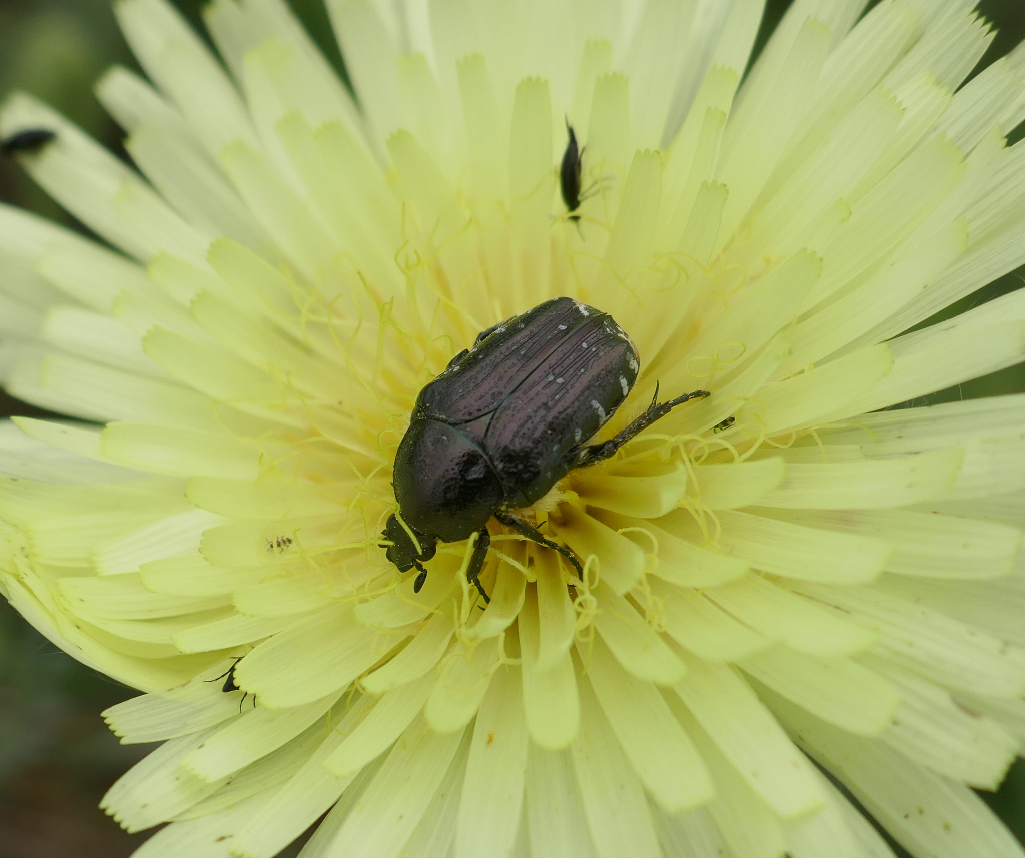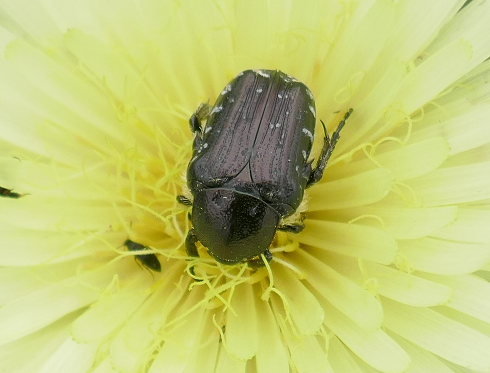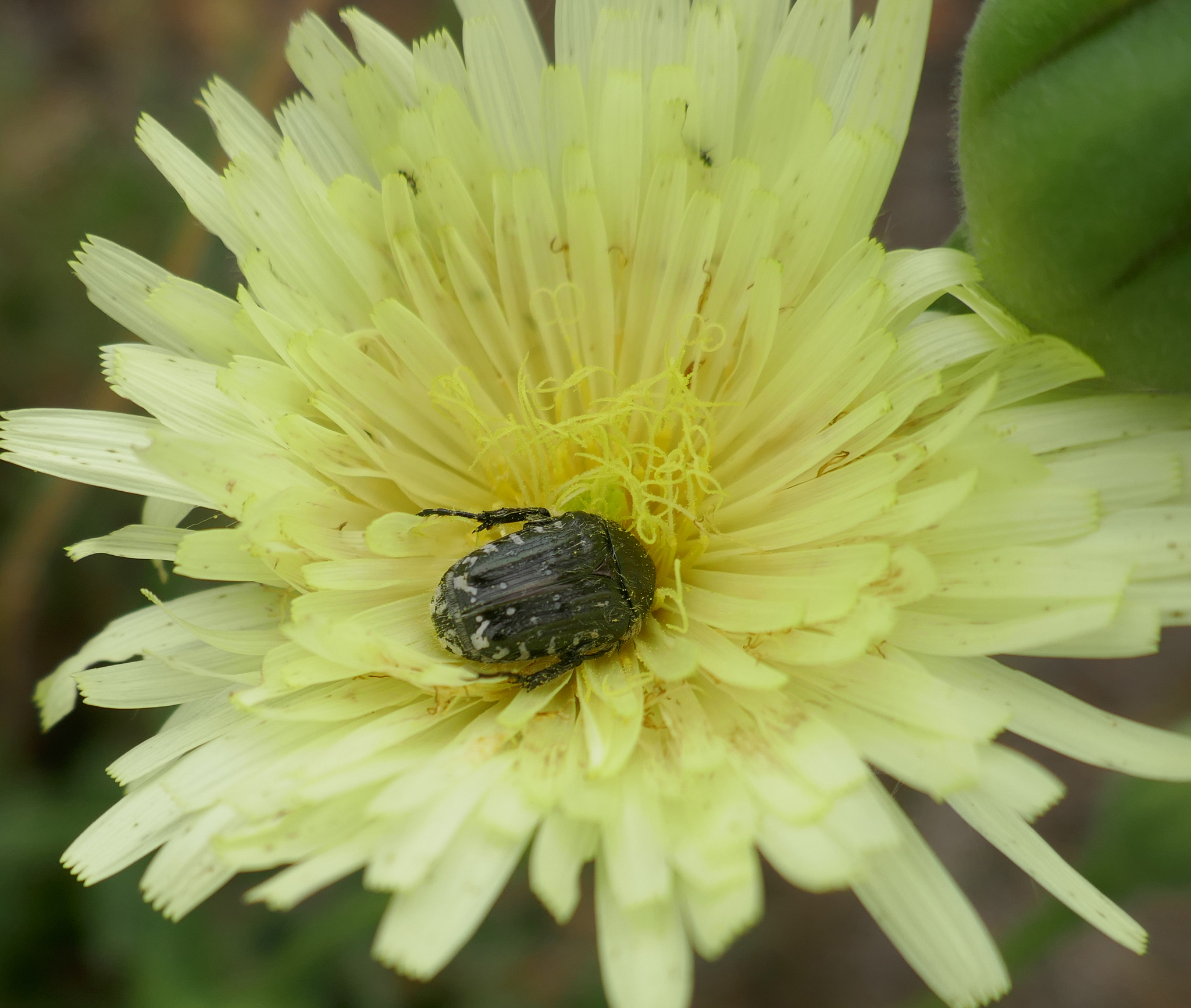 Oxythyrea funesta | species | Urospermum dalechampii | species | interactsWith | Animalia | Arthropoda | Insecta | Coleoptera | Scarabaeidae | Oxythyrea | Plantae | Tracheophyta | Magnoliopsida | Asterales | Asteraceae | Urospermum | 43.492704 | 3.677746 | 2023 | 5 | 21 | http://creativecommons.org/licenses/by-nc/4.0/ | https://www.inaturalist.org/observations/163095741 | |