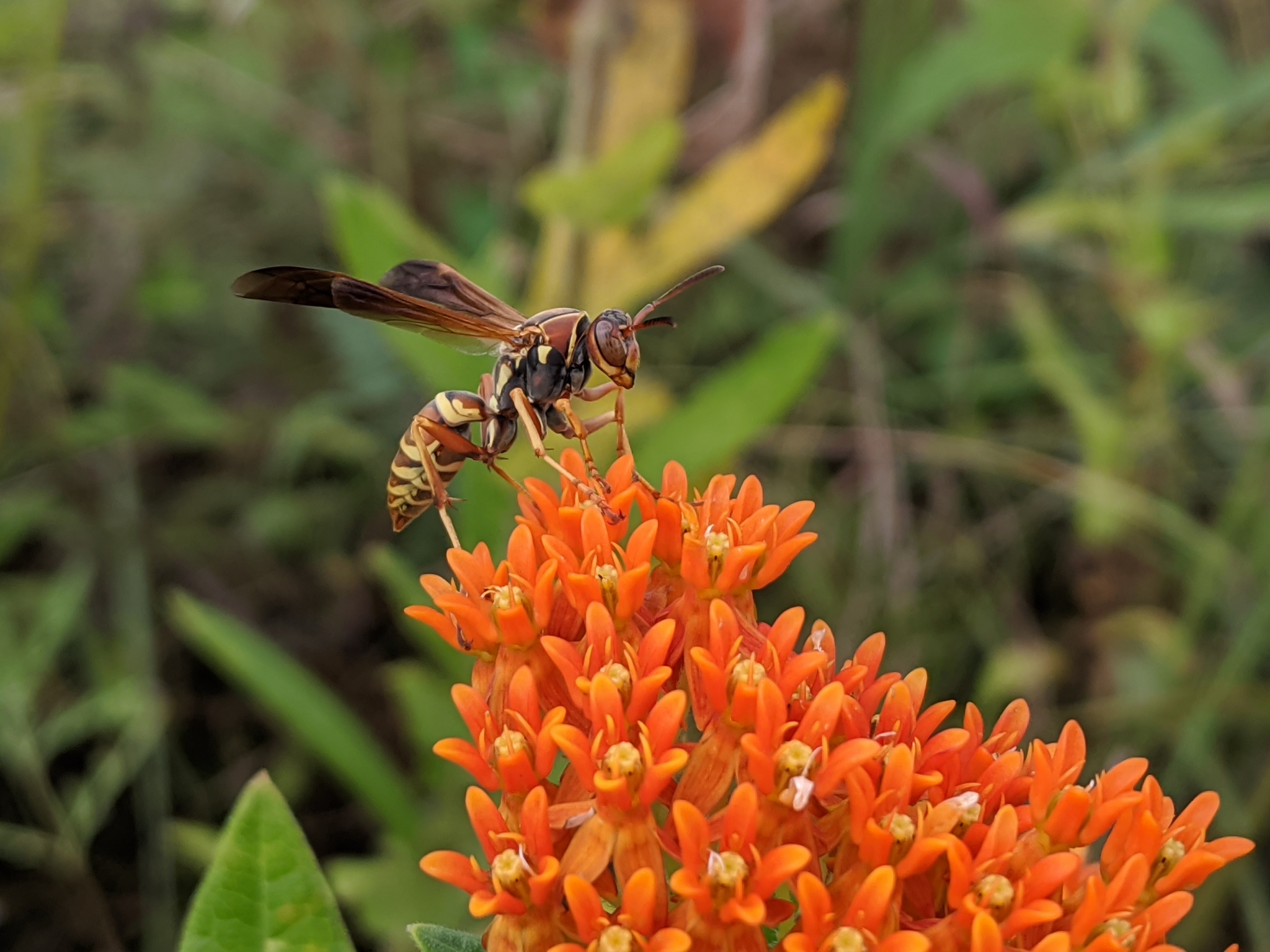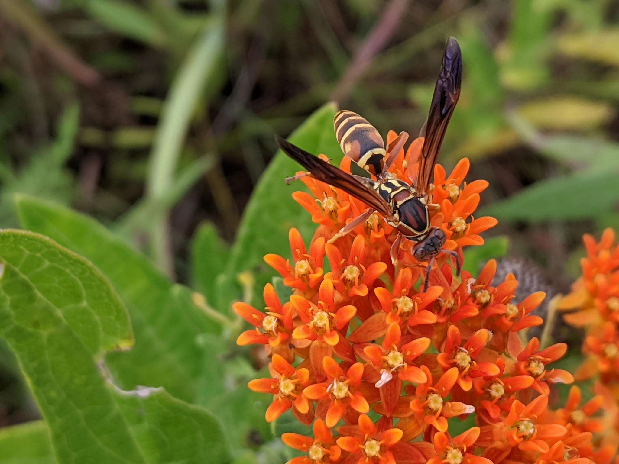 Polistes fuscatus | species | Asclepias tuberosa | species | visitsFlowersOf | Animalia | Arthropoda | Insecta | Hymenoptera | Eumenidae | Polistes | Plantae | Tracheophyta | Magnoliopsida | Gentianales | Apocynaceae | Asclepias | 37.909056 | -93.987003 | 2020 | 7 | 28 | http://creativecommons.org/licenses/by-nc/4.0/ | https://www.inaturalist.org/observations/70995847 | |