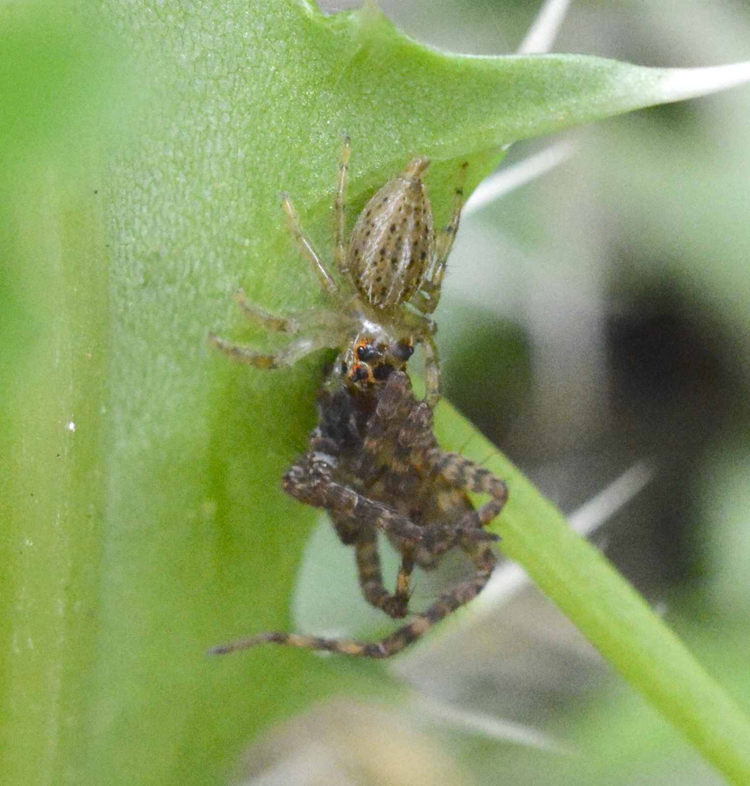 Colonus sylvanus | species | Agelenopsis | genus | eats | Animalia | Arthropoda | Arachnida | Araneae | Salticidae | Colonus | Animalia | Arthropoda | Arachnida | Araneae | Agelenidae | Agelenopsis | 30.368937 | -91.108129 | 2021 | 3 | 10 | http://creativecommons.org/licenses/by/4.0/ | https://www.inaturalist.org/observations/70962920 | |