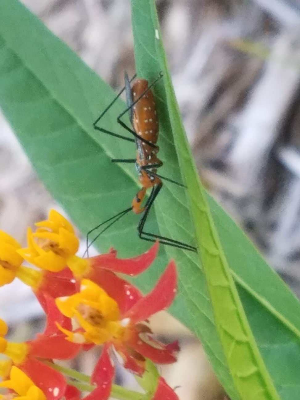 Zelus longipes | species | Asclepias curassavica | species | visitsFlowersOf | Animalia | Arthropoda | Insecta | Hemiptera | Reduviidae | Zelus | Plantae | Tracheophyta | Magnoliopsida | Gentianales | Apocynaceae | Asclepias | 26.328685 | -80.173674 | 2021 | 3 | 10 | http://creativecommons.org/publicdomain/zero/1.0/ | https://www.inaturalist.org/observations/70977086 | |