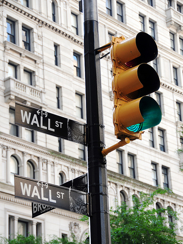 A traffic light on Wall Street in New York City.