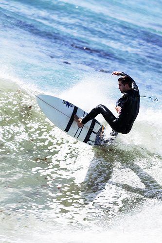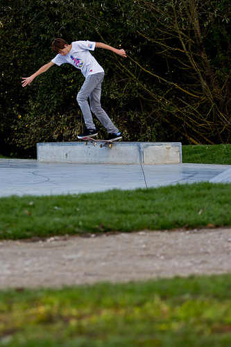 A man that is standing on a skateboard.