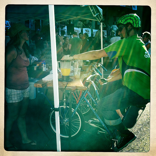 a couple of people that are standing next to some bikes