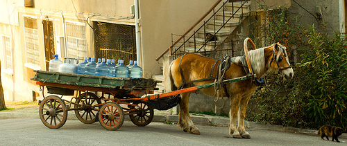 two horses and two carriages