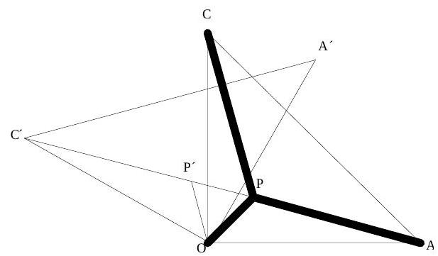 $[V] \leq \frac{1}{2} \sum_{i=1}^{4} O A_{i}^{2}$