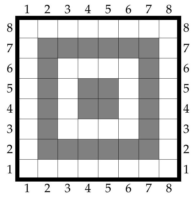 Bezeichnungen: Der Flächeninhalt eines Polygons $X$ sei mit $[X]$ bezeichnet. Ein Viereck heiße legal, wenn alle seine Eckpunkte zu $K$ gehören. Weiter sei $O=\left(k-\frac{1}{2}, k-\frac{1}{2}\right)$ der Mittelpunkt von $K$. Ein legales Viereck heiße zentral, wenn es punktsymmetrisch mit $O$ als Mittelpunkt ist. Jede Menge $V$ von Vierecken, die die Bedingungen der Aufgabenstellung erfüllt, heiße akzeptabel. Für jede akzeptable Menge $V$ sei die Flächensumme ihrer Vierecke mit $S(V)$ bezeichnet.