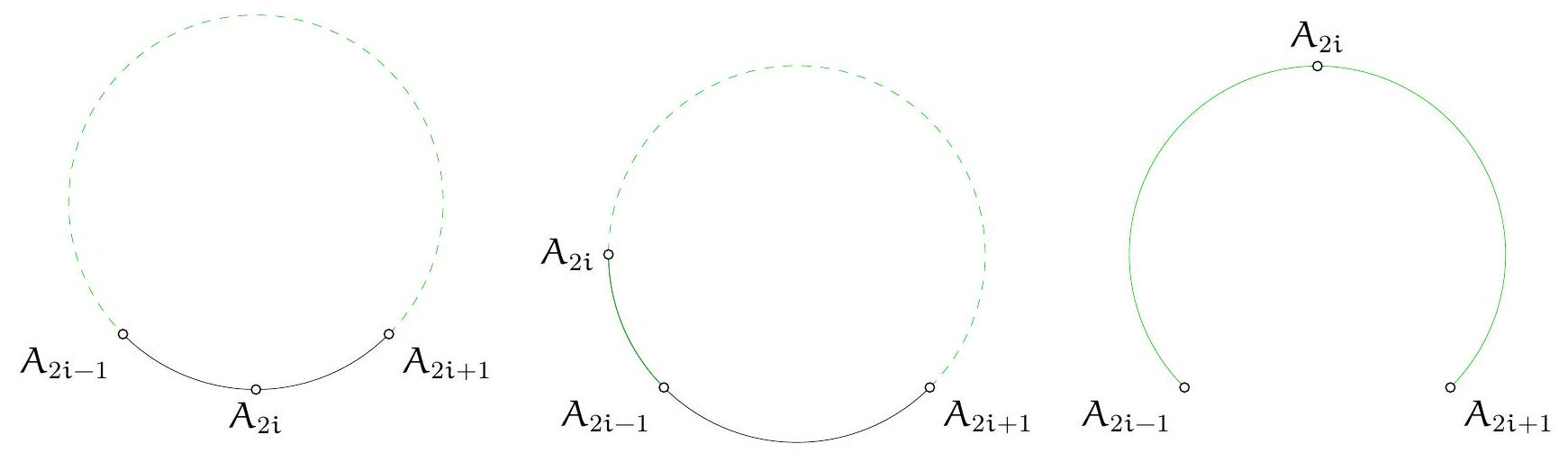 De la même façon, la demi-droite d coupe la droite $\left(A_{2 k+2-r} A_{2 k+1-r}\right)$ pour les $r$ satisfaisant $r \leqslant\left\lfloor\frac{k}{2}\right\rfloor-1$. Il vient que la droite $d$ coupe le segment $\left[A 1 A_{2}\right]$ et au moins $\left.\left\lfloor\frac{k+1}{2}\right\rfloor+\frac{k}{2}\right\rfloor-1=k-1$ droites, soit au moins $k$ droites.