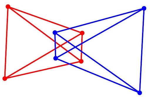 Preuve du lemme: Commençons par montrer que $\mathrm{K}_{\mathrm{k}}$ et $\mathrm{K}_{\ell}$ contiennent chacun soit $S_{1}$ soit $S_{2}$. En effet, soit $v \in S_{1}$ n' appartenant pas à $K_{\ell}$. Pour tout sommet $w$ de $S_{2}$, l'arête $v w$ appartient donc à $K_{k}$, mais alors $w$ appartient à $K_{k}$, donc $K_{k}$ contient tous les sommets de $S_{2}$. Mais alors, en raisonnant sur un sommet de $S_{1}$ n'appartenant pas à $K_{k}$, on obtient que $K_{\ell}$ contient aussi tous les éléments de $S_{2}$. Ainsi, chaque sommet de $S_{2}$ appartient à $K_{k}$ et à $K_{\ell}$ et chaque sommet de $S_{1}$ appartient à $K_{k}$ ou à $K_{\ell}$, de sorte que $k+\ell \geqslant\left|S_{1}\right|+2\left|S_{2}\right|=3 \mathrm{~m}$