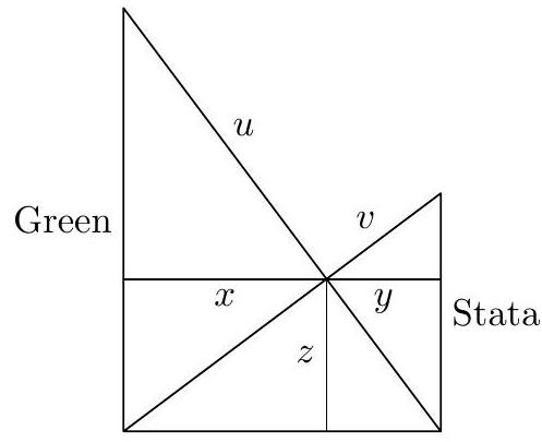 Note that due to all the 3-4-5 triangles, we find $\frac{x}{z}=\frac{z}{y}=\frac{4}{3}$, so $120=x+y=\frac{25}{12} z$. Then,