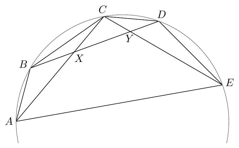 First, it is known that $\angle B A D+\angle C D A=180^{\circ}$. Further, $\angle D A E=\frac{\angle B A D}{2}$. Thus, as the angles in triangle $A D E$ sum to $180^{\circ}$, this means $\angle D E A=\frac{\angle B A D}{2}=\angle D A E$. Therefore, $D A E$ is isosceles, making $D E=200$ and $C E=280$.