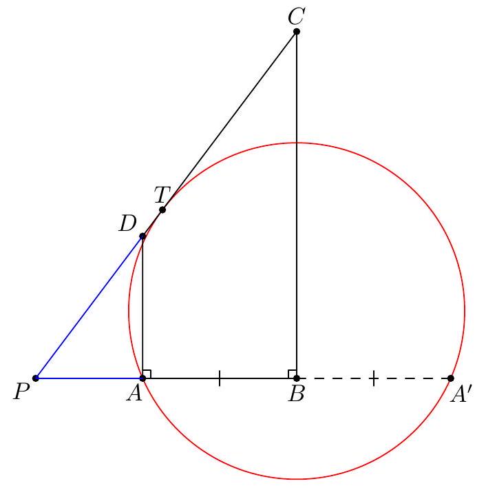 Let $O$ be the center of the circle, and let $Z$ be the foot from $O$ to $A D$. Since $X Y$ is a diameter, $O T=Z D=3$, so $A Z=2$. Then $O Z=\sqrt{5}$ and $A T=\sqrt{O Z^{2}+25}=\sqrt{30}$.