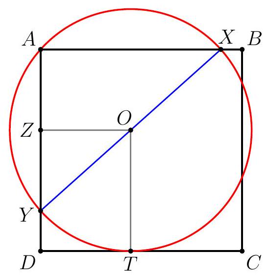 Let $A B C D$ be a square of side length 5. A circle passing through $A$ is tangent to segment $C D$ at $T$ and meets $A B$ and $A D$ again at $X \neq A$ and $Y \neq A$, respectively. Given that $X Y=6$, compute $A T$.