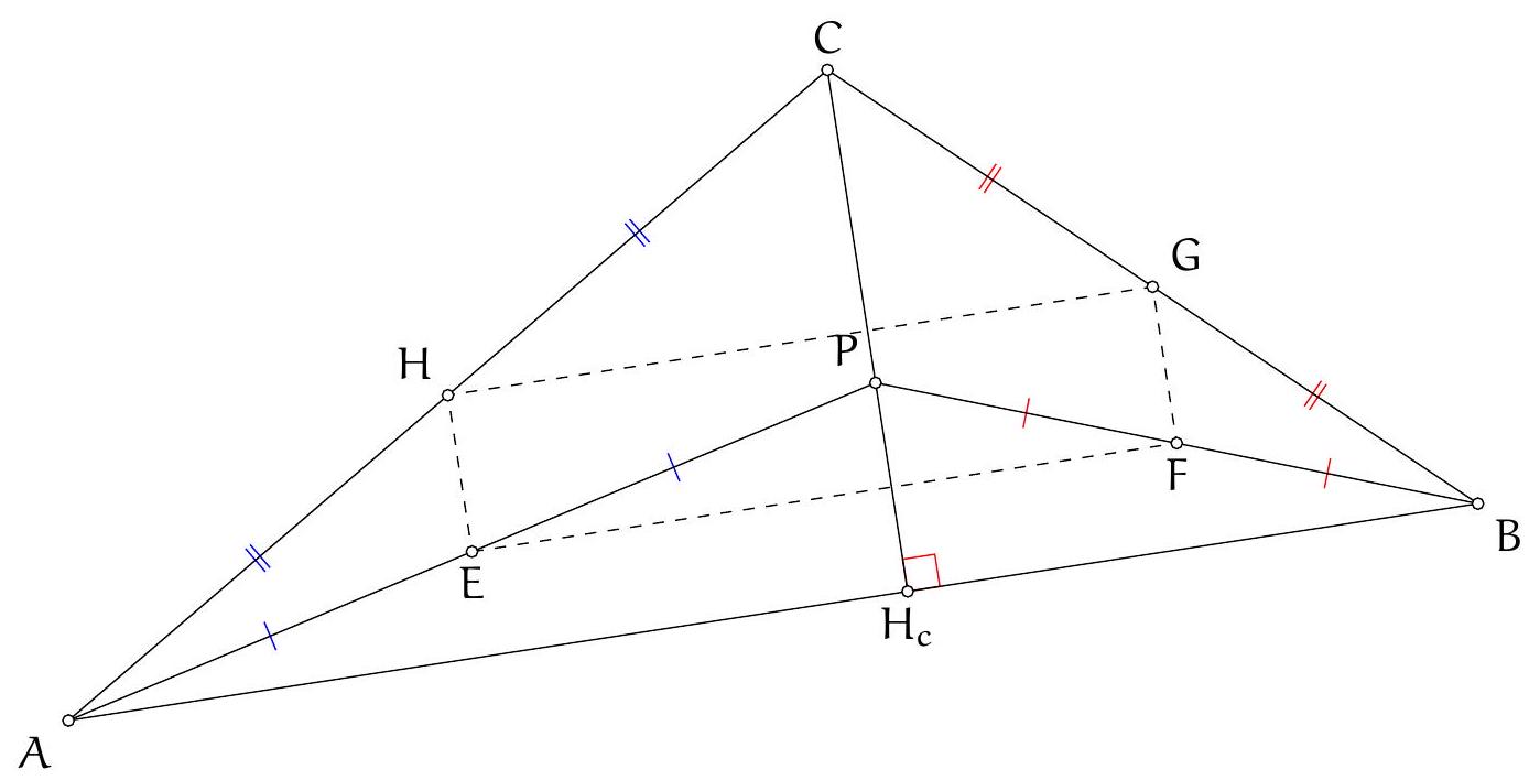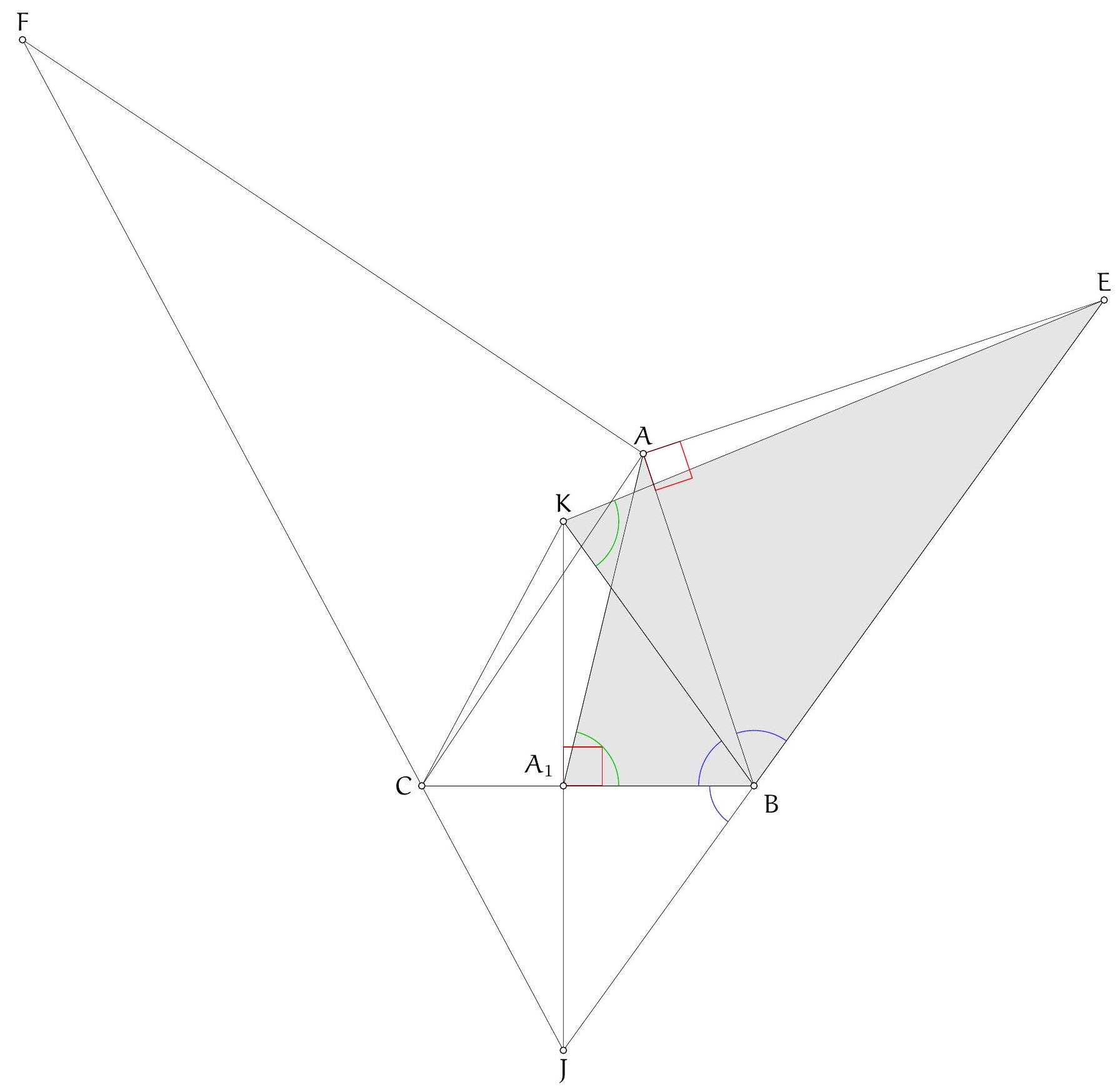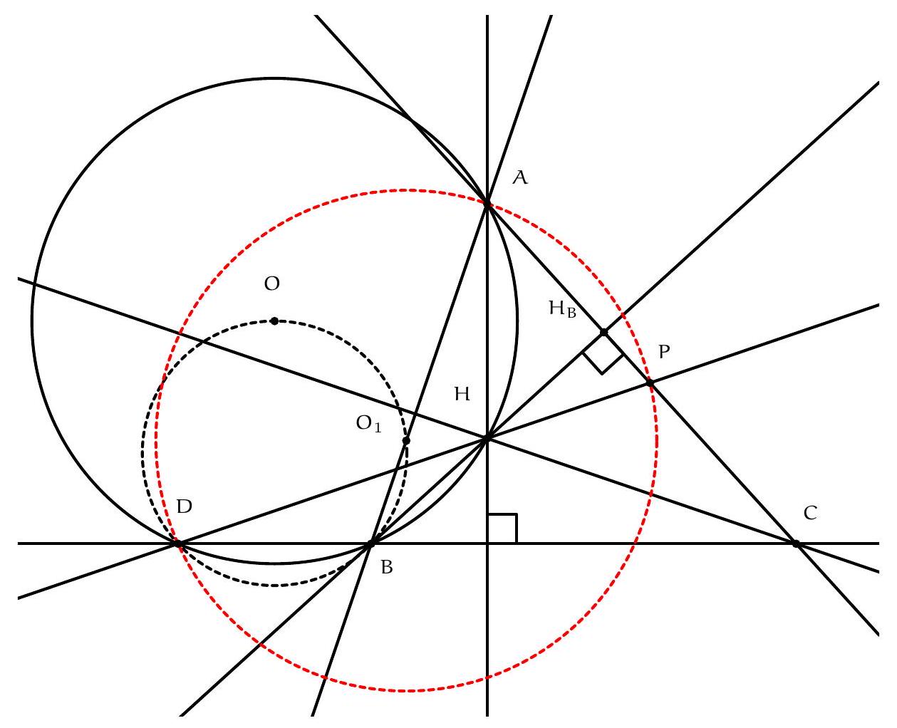 On conjecture sur une bonne figure que les points $\mathrm{H}, \mathrm{P}$ et B sont alignés, de même pour les points $K, P$ et $A$.