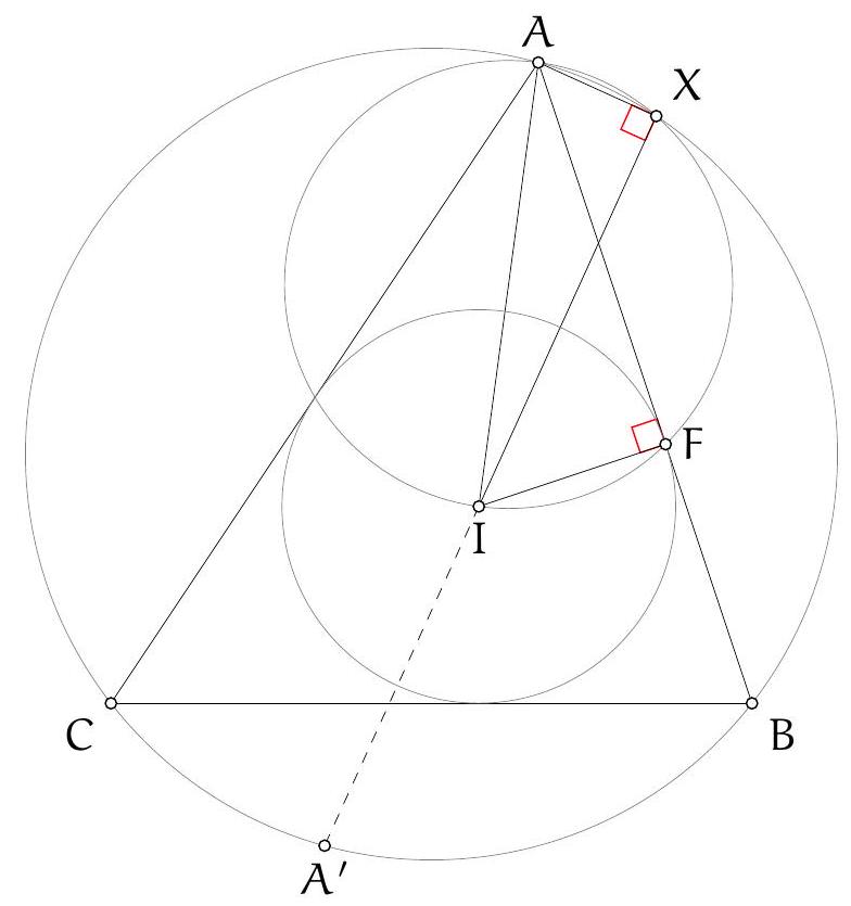 Lemme 3. $\left(A A^{*}\right)$ est tangente au cercle circonscrit de $A B C$.