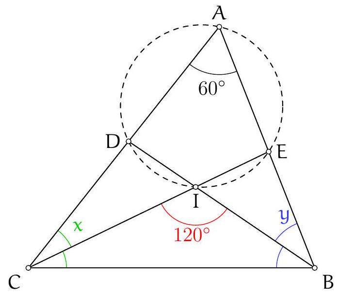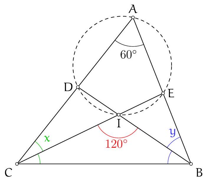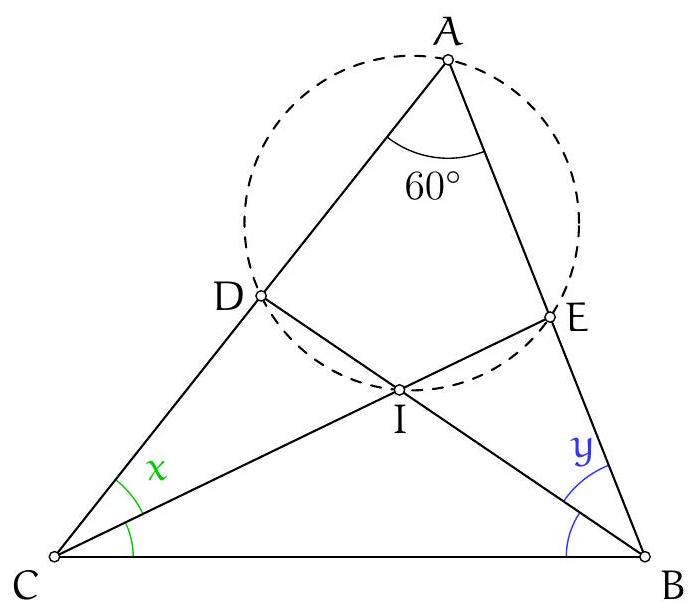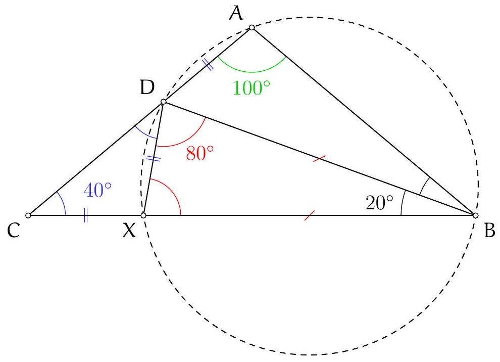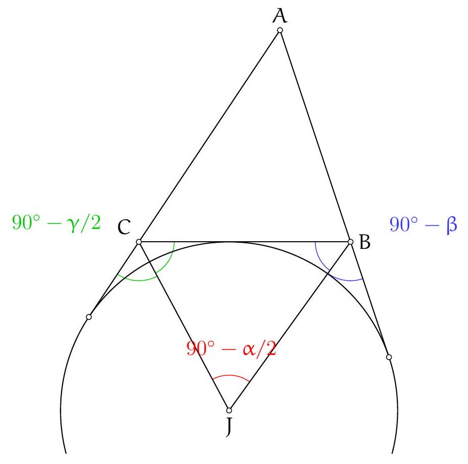 We calculate the angle $\left(C_{B} A, B_{C} A\right)$: