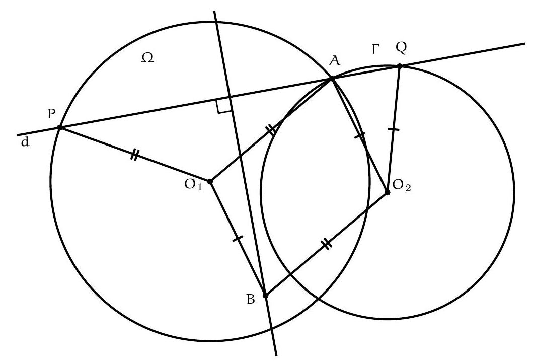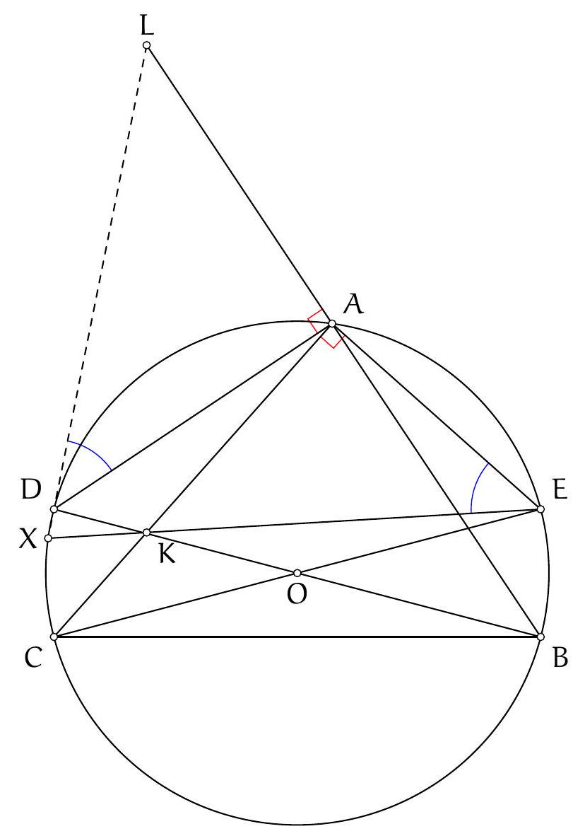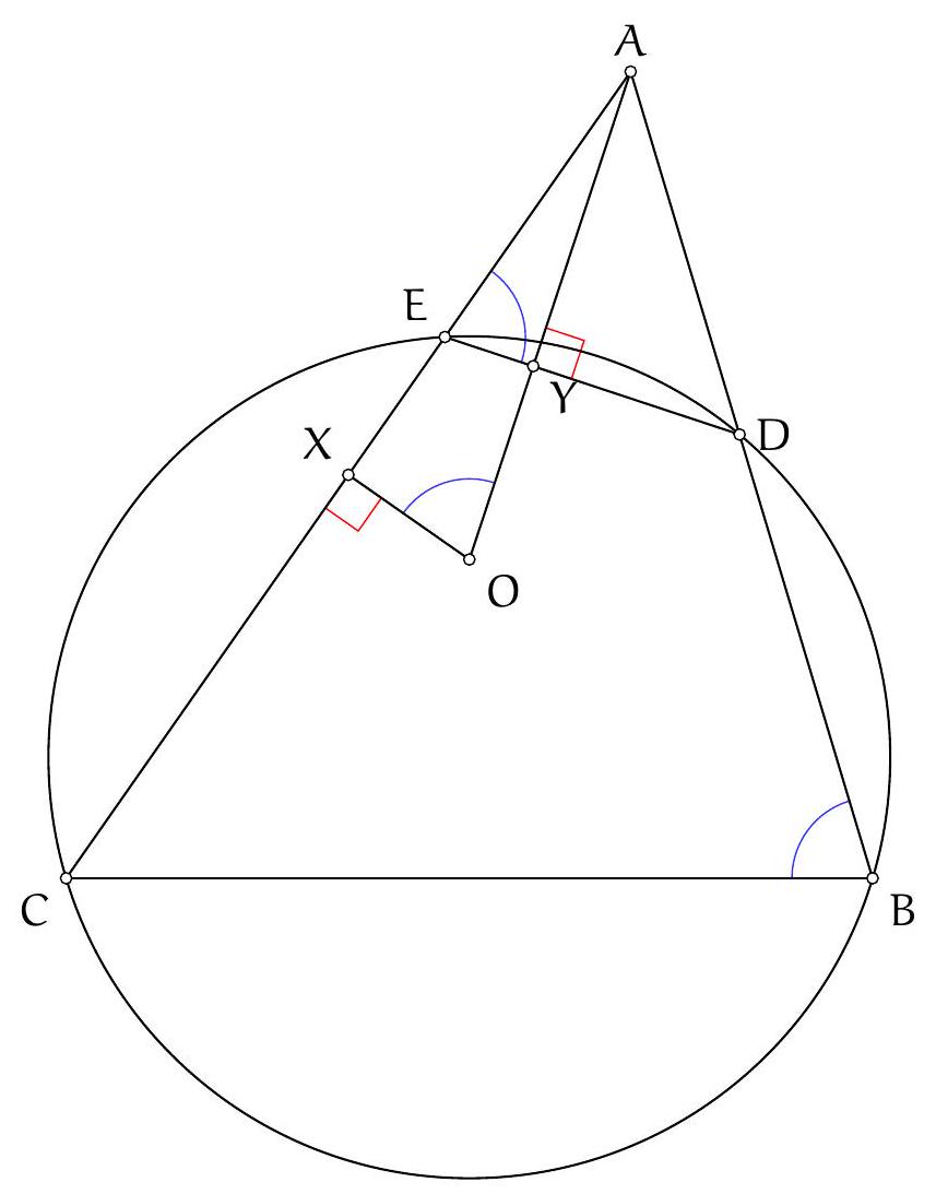 De manière symétrique, $B_{A}$ est sur la médiatrice de $[B C]$ et ainsi $O, B_{A}$ et $C_{A}$ sont alignés.