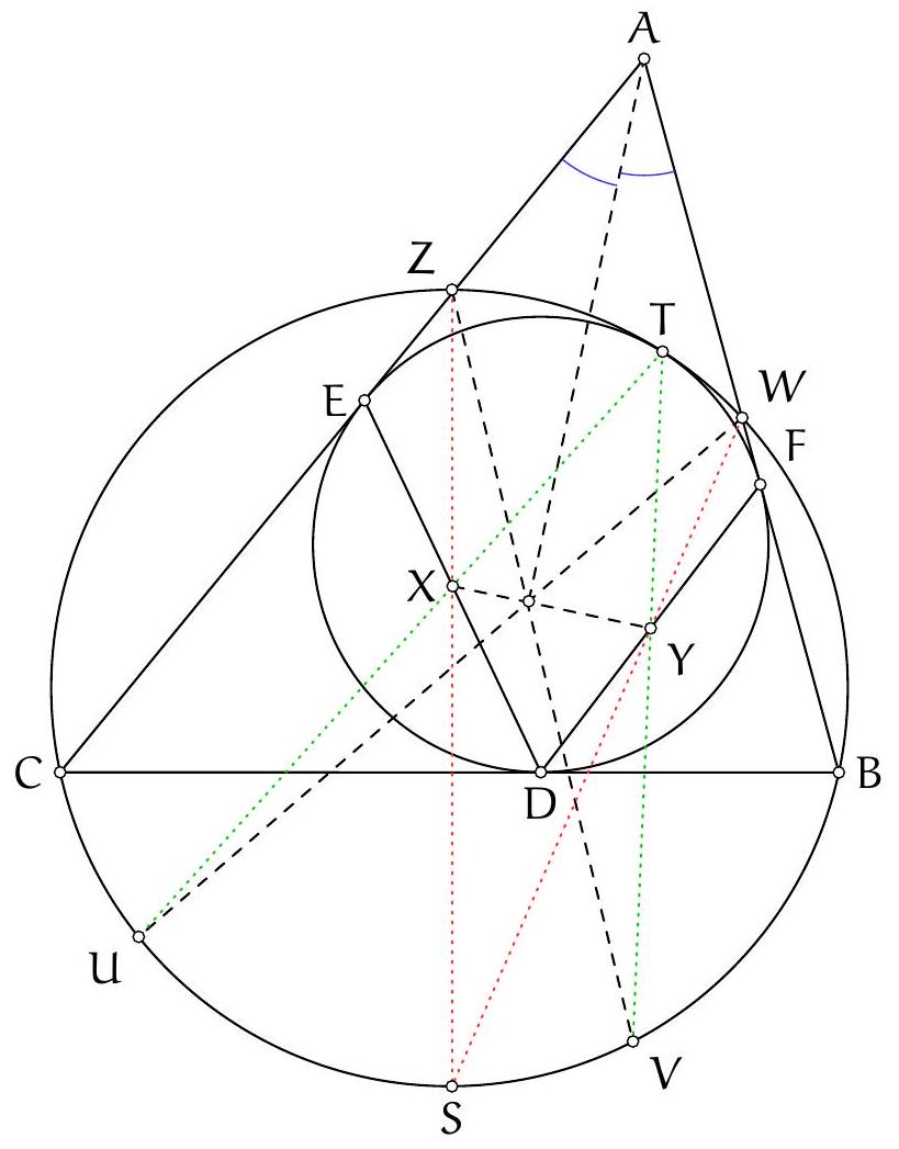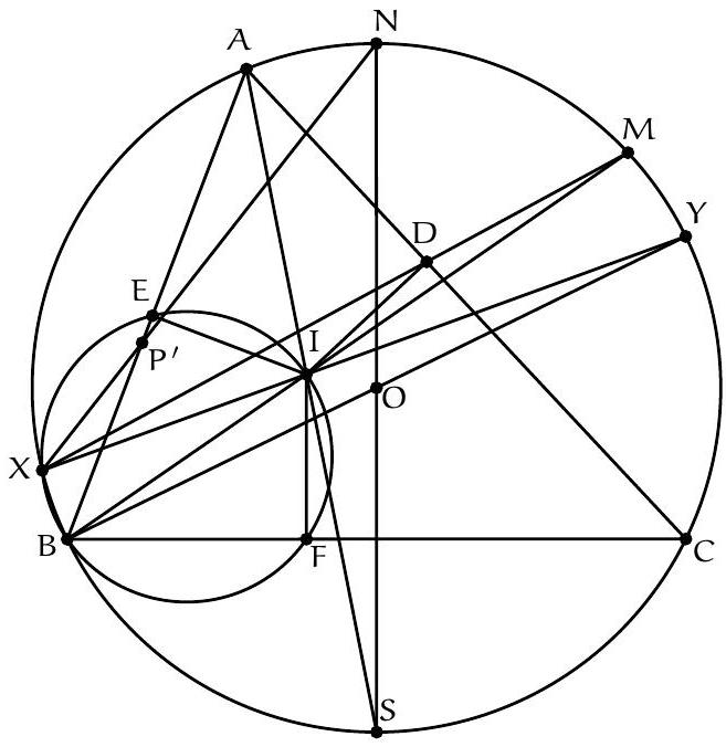 En posant $X, Y, Z=A^{\prime}, C_{B}, B^{*}$ et $X^{\prime}, Y^{\prime}, Z^{\prime}=A^{*}, C^{*}, B_{C}$. Alors $B_{C} C^{*} A^{\prime}, C_{B} B_{C} A^{*}$ et $A^{*} B^{*} C^{*}$ sont concourantes en $T$ également (car $T$ est déjà sur les cercles circonscrits de $B_{C} C^{*} A^{\prime}$ et $C_{B} B_{C} A^{*}$ ). Cela démontre ainsi que le point $T$ est sur le cercle circonscrit de $A^{*} B^{*} C^{*} T$.