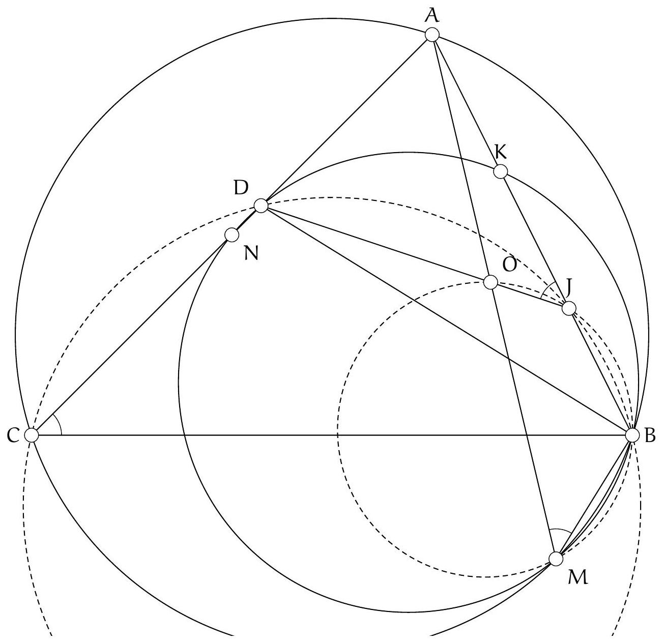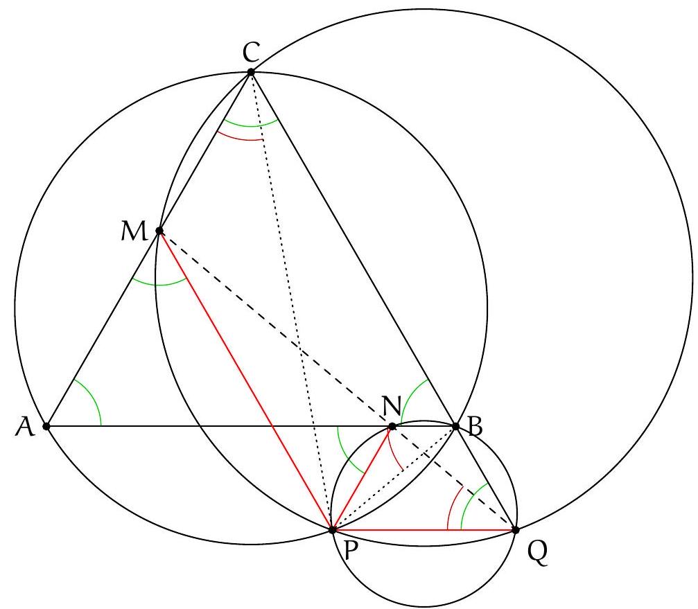 En conclusion, les points $C_{B}, B_{C}, T, A$ et $A^{*}$ sont cocycliques.