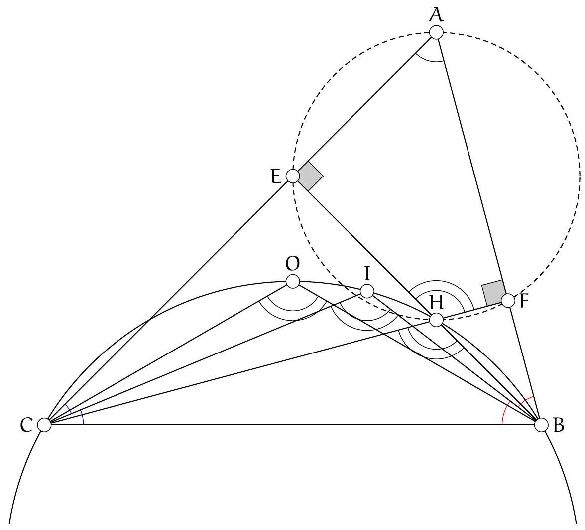 De plus, les angles en $B_{A}$ et $B$ des triangles $A^{*} B_{A} C_{A}$ et $B C O$ sont égaux, ce qui montre en fait que $A^{*} B_{A} C_{A} \sim O B C$.
