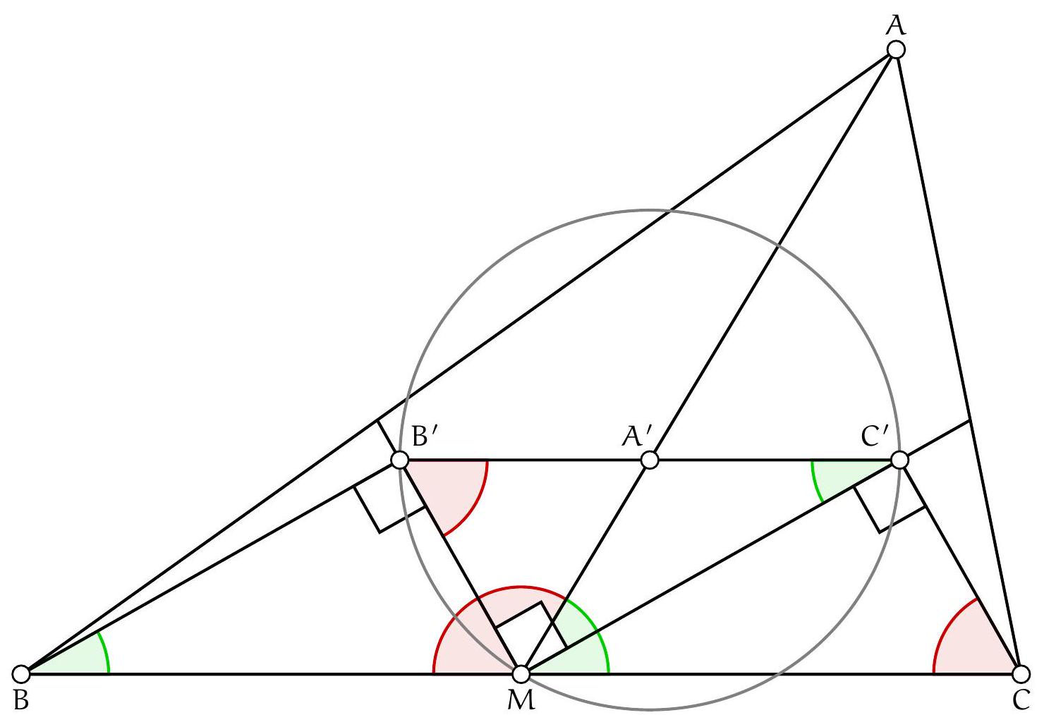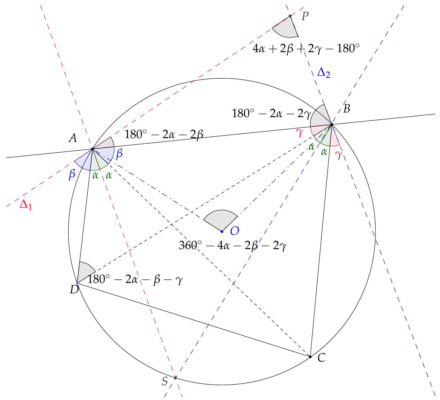 L'énoncé nous donne plein d'égalités d'angles : exploitons-les! Tout d'abord, on remarque que