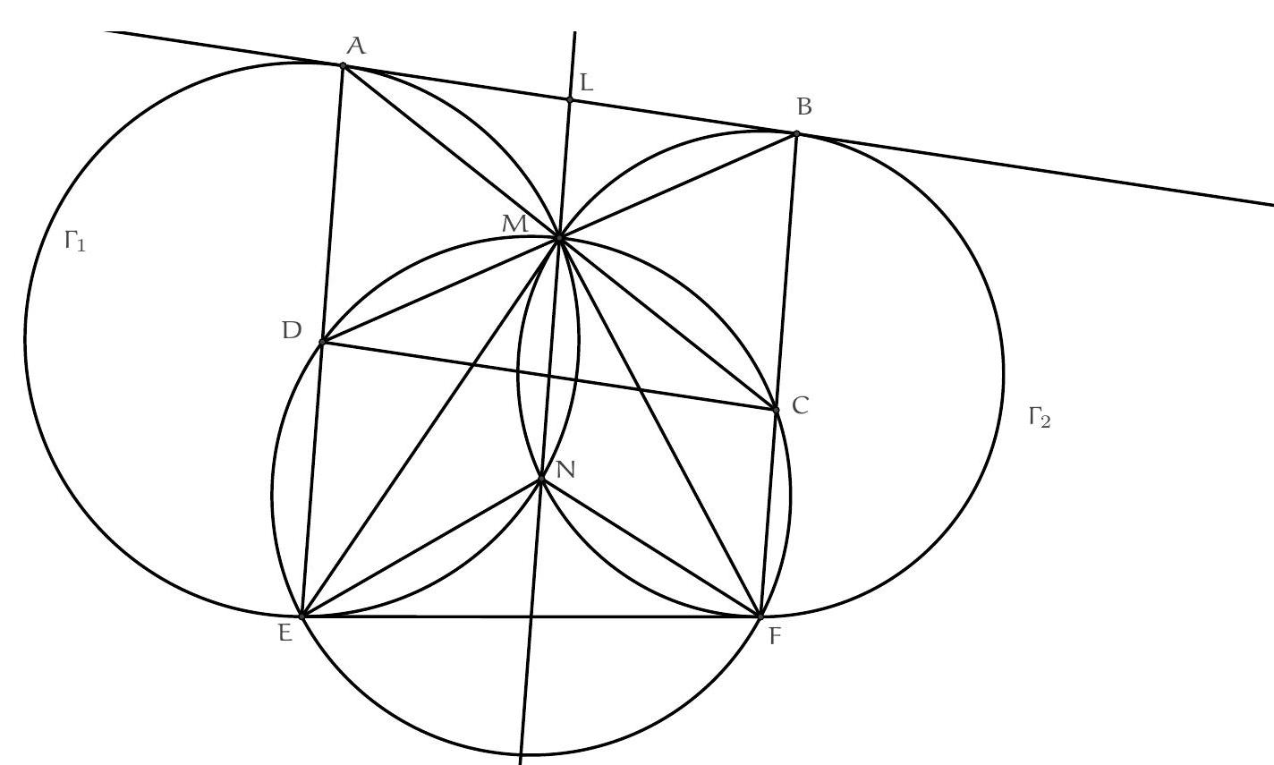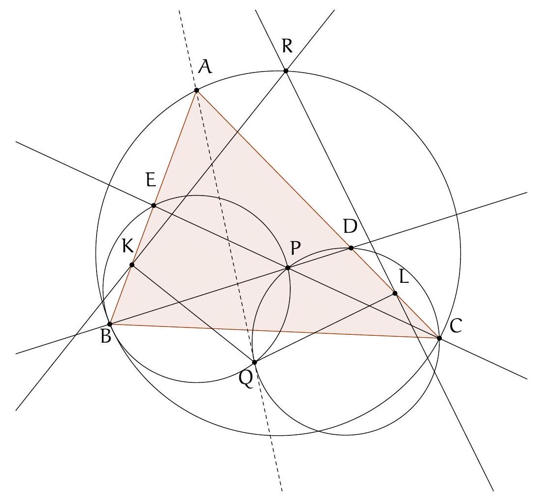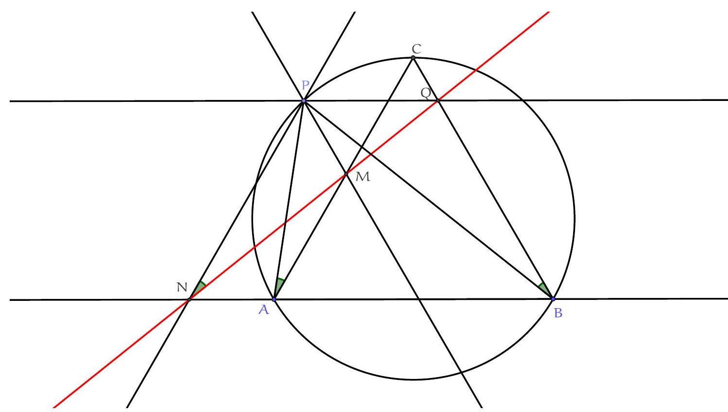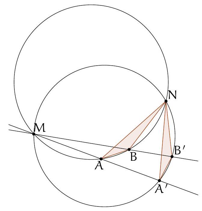 ce qui signifie là encore que les points $A, B, P$ et $Q$ sont cocycliques.