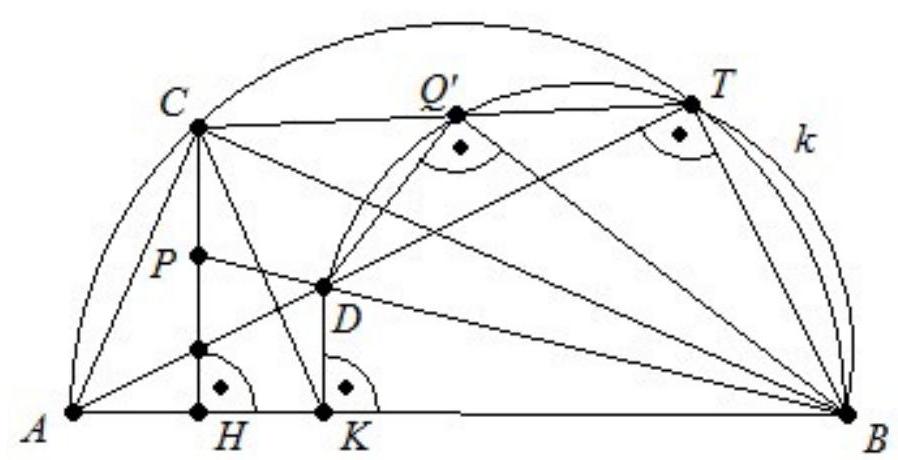 II. Da $A E \| B D$ ist das Sehnenviereck $A B D E$ ein gleichschenkeliges Trapez und demnach $A B=D E$. Weiterhin ist $D E=X E$ nach Konstruktion von $X$ und mithin $A B=X E$, d.h. die Hypotenusen stimmen überein.