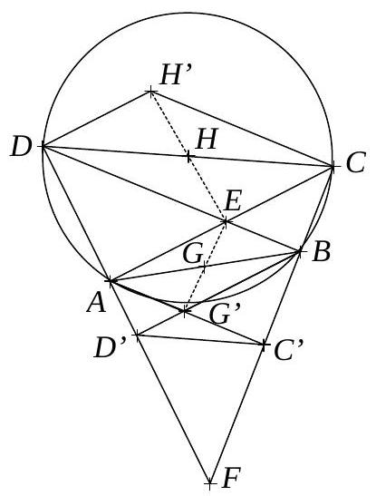 Man beweise, dass der Spiegelpunkt von G bezüglich der Achse AB auf der Geraden CF liegt.