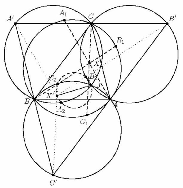 Therefore, $A^{\prime} I=A^{\prime} C$. By similar arguments, $A^{\prime} I=A^{\prime} B$. So, $A^{\prime}$ is equidistant from $B, I, C$, and thus is its circumcenter.