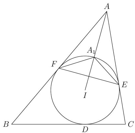 - Given $A B C$ a triangle, the three angle bisectors are concurrent at the incenter of the triangle. The incenter is the center of the incircle, which is the unique circle inscribed in $A B C$, tangent to all three sides.