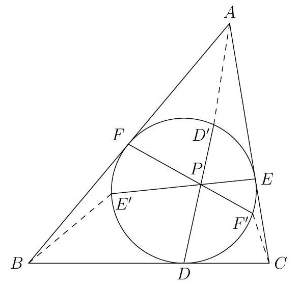 Let $P$ be a point inside the incircle of $A B C$. Let lines $D P, E P, F P$ meet the incircle again at $D^{\prime}, E^{\prime}, F^{\prime}$. Show that $A D^{\prime}, B E^{\prime}, C F^{\prime}$ are concurrent.